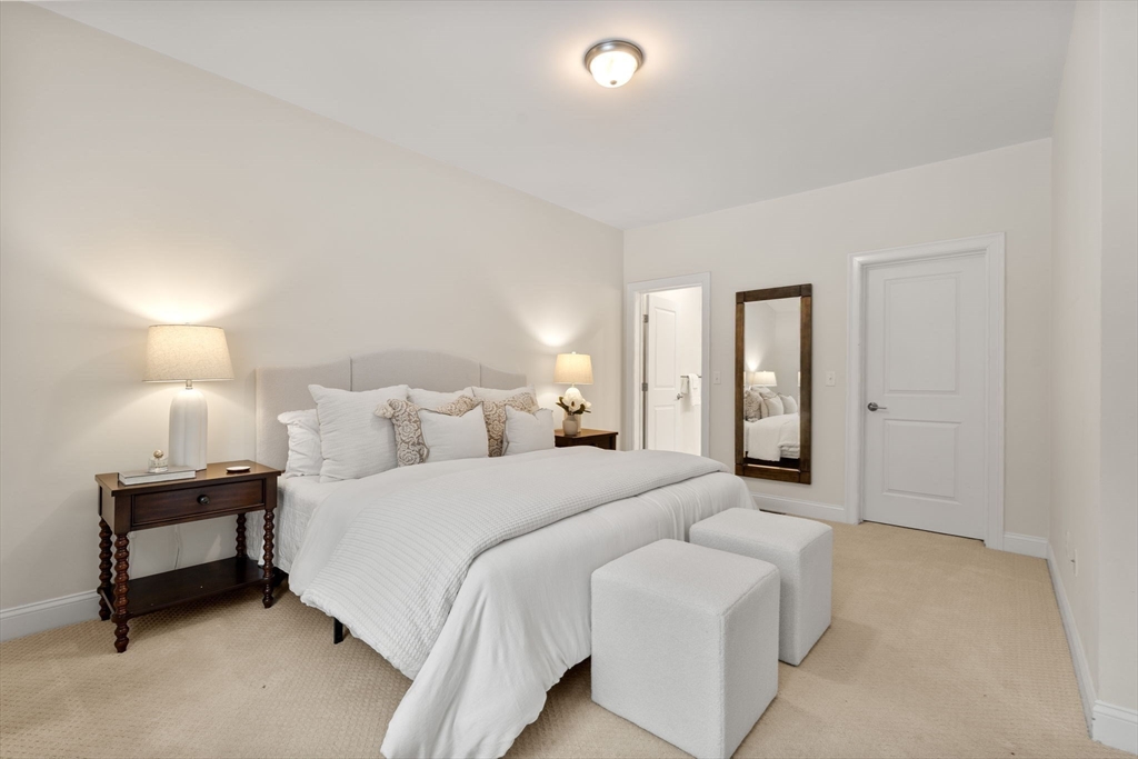 This beautifully appointed single family attached home in The Bay Club, where refined modern style meets everyday practicality. Thoughtfully designed with both entertaining and comfort in mind, this residence offers an inviting and functional layout throughout.The spacious open floor plan seamlessly connects the living, dining, and kitchen areas, creating an ideal setting for gatherings or relaxed daily living. The sun-filled living room offers a warm, welcoming atmosphere, while the stunning kitchen serves as the heart of the home, featuring sleek appliances, a granite island, and ample space for cooking and conversation.The main-level primary suite provides convenience and privacy, complete with a generous walk-in closet , bath with dual vanities and a walk-in shower. Step outside to a private deck overlooking the landscaped backyard—perfect for enjoying peaceful mornings or evening unwinding.Upstairs, a cozy sitting area complements two additional bedrooms.