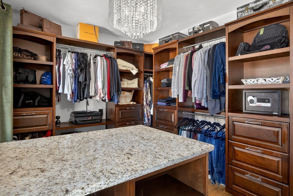 A truly custom home offering expansive first floor living on a private lot of nearly an acre of land, complete with a stunning in ground pool with waterfall feature. This young home showcases gleaming hardwood floors throughout and exceptional attention to detail.The kitchen features luxury appliances, high end cabinetry with illuminated upper cabinets, stone countertops, and a beautiful walk in pantry, creating the perfect space for both everyday living and entertaining.The primary suite is a private oasis filled with natural light and complemented by a cozy fireplace, a spa inspired bathroom with double sinks, two water closets, a walk in rain shower, and a soaking tub. A custom walk in closet has been thoughtfully designed to organize your wardrobe.A second bedroom offers a generous closet and convenient access to the well appointed hall bathroom. The home also features a wonderful laundry room designed for both functionality and ease.The backyard is a private retreat inground pool.