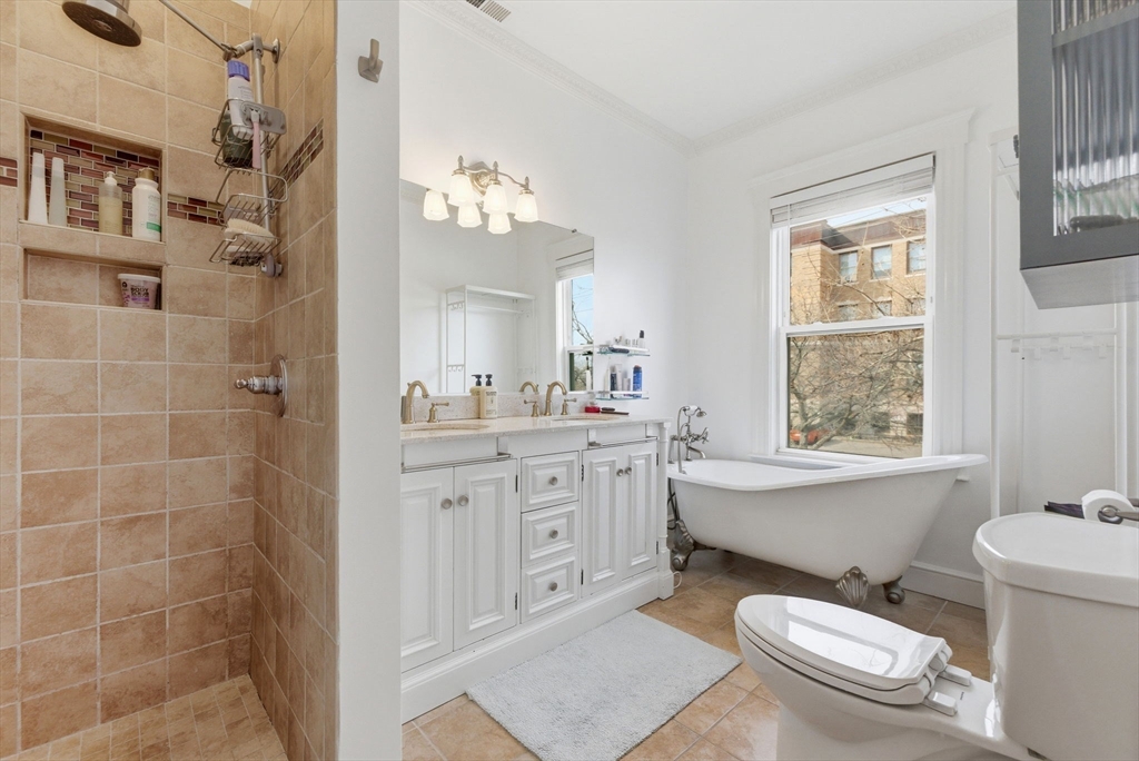 This bi-level 2 bedroom, 2.5 bathroom rental unit offers a spacious roughly 1200 square feet of living space, perfect for those who crave both comfort and style. As you step into the unit, you'll be greeted by an open-concept living area. The kitchen boasts sleek stainless steel appliances and ample storage space. Both bedrooms are generously sized and offer plenty of closet space for all your belongings. The primary bedroom features an en-suite bathroom with a walk-in shower, a stand alone tub and a walk-in closet! Second bedroom is just below primary via a spacious spiral staircase, and it also has a full bathroom. Additional amenities include a deck with water views, hardwood flooring throughout, in-unit laundry, a fireplace, and central air conditioning to keep you comfortable year-round. Pets allowed! And with a convenient location in the heart of South Boston, you'll be just steps away from some of the city's best restaurants, shopping, and entertainment.