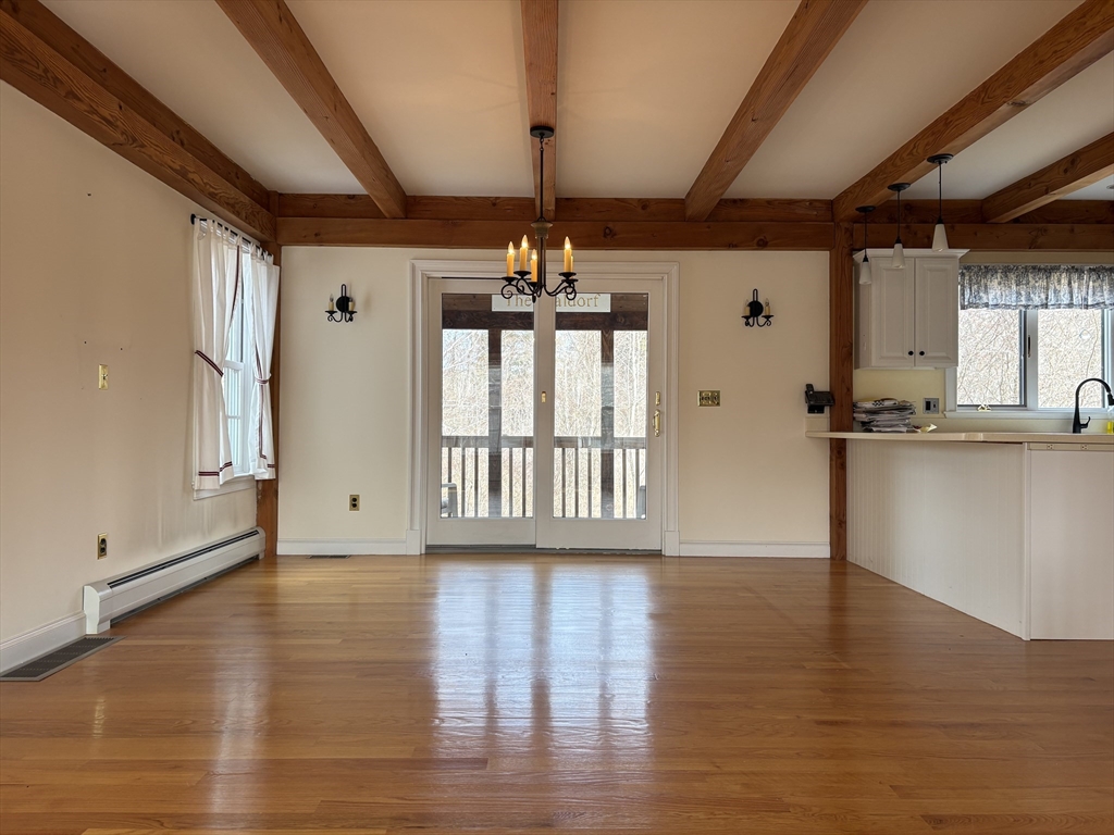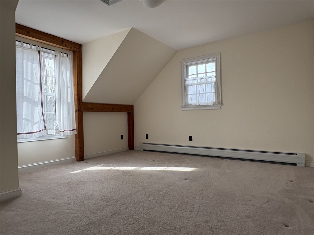 Beautifully designed post and beam home with an open floor plan and great light! Large living/dining room with beautiful hardwood floors and a lovely fireplace. Sliders open to the screened porch overlooking the backyard. The large kitchen is open to the living area and features plentiful counter and cabinet space, including a pantry, and counter seating. The first floor bed and bath suite features a cathedral ceiling, lots of windows and a window seat. This could work also as a great family room. Upstairs are two bed and bath suites, and the laundry. Plentiful closet space, a full usable basement and an oversized three car garage with loft above provide a huge amount of storage area. The 3+ acre lot includes room for gardens and a backyard patio area. All of this in a lovely country setting that is just minutes to I-91.