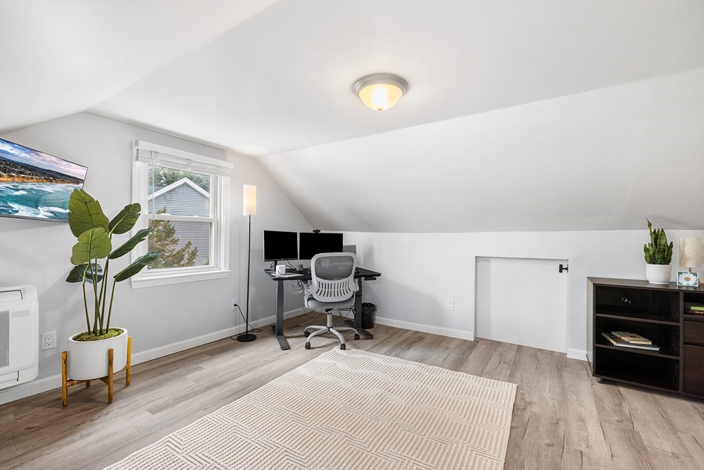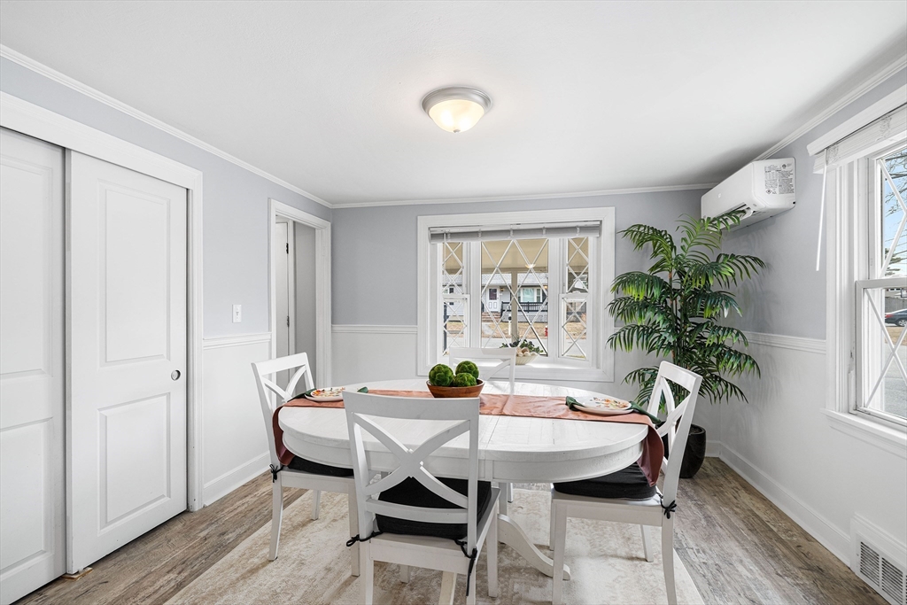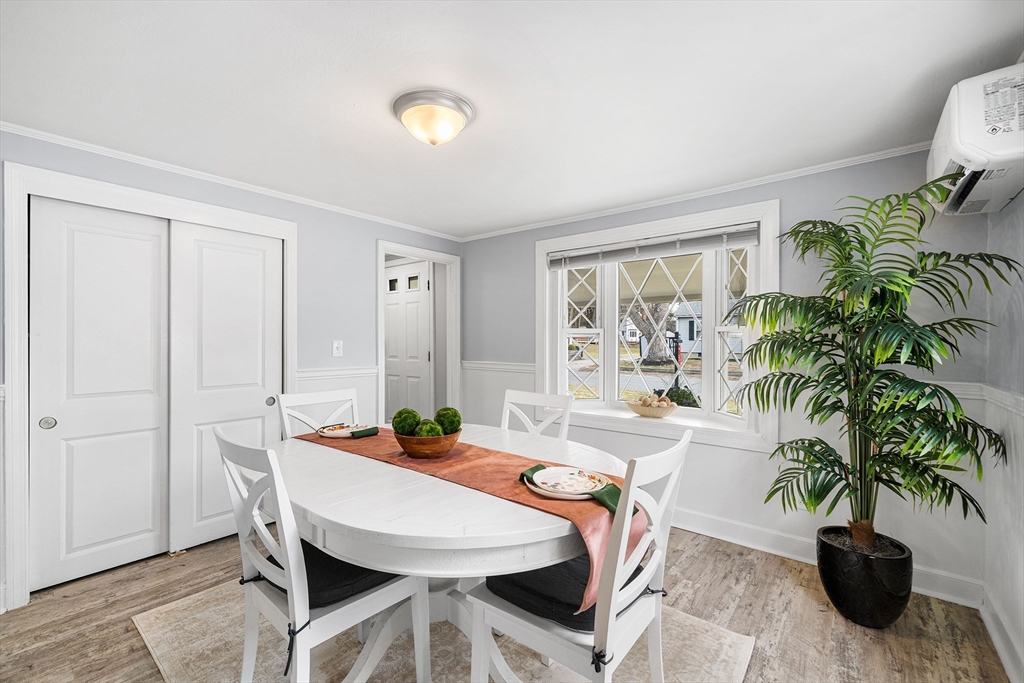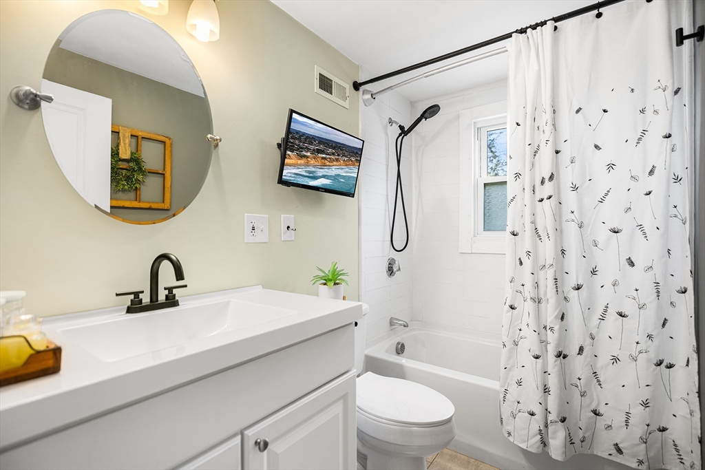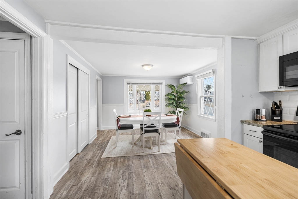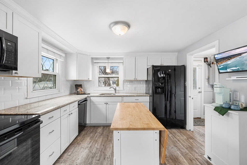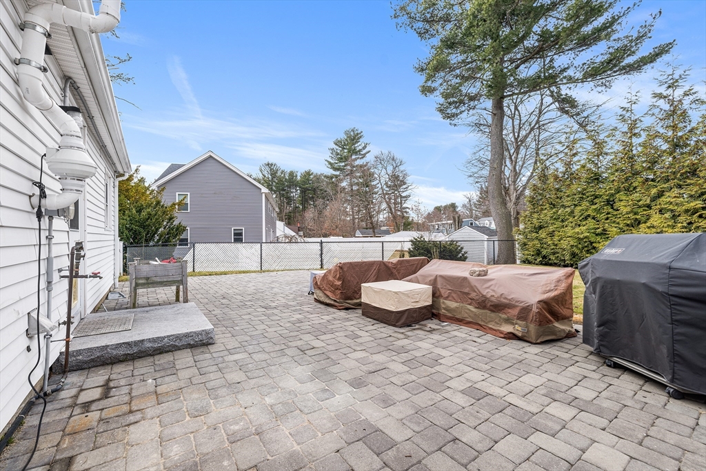 Welcome to this beautifully remodeled three-bedroom home offering stylish updates and comfortable living. The bright, open living space features a welcoming living room with fireplace, gleaming hardwood floors, and a classic hardwood staircase full of charm. The updated kitchen with granite countertops and tile backsplash opens to the dining room, perfect for everyday living and entertaining. A convenient first-floor bedroom offers flexible living, with two additional bedrooms upstairs. The home also features an updated full bath and a brand new March 2026 heat pump HVAC system with central air. Set on a corner lot, the professionally landscaped yard includes a fenced backyard and a large new brick patio, ideal for relaxing or gatherings. Located in the sought-after Hathaway Acres neighborhood, close to Woburn Street School, Family Medical Center, and just off I-93, this move-in ready home blends comfort, style, and commuter convenience. Offer Deadline 4PM Mon. 03/23/2026