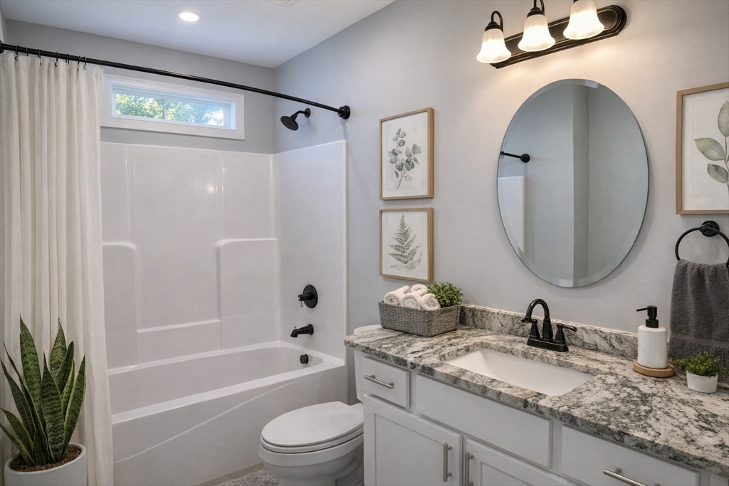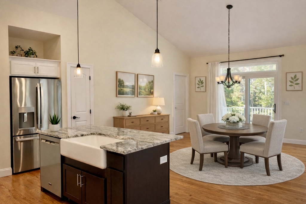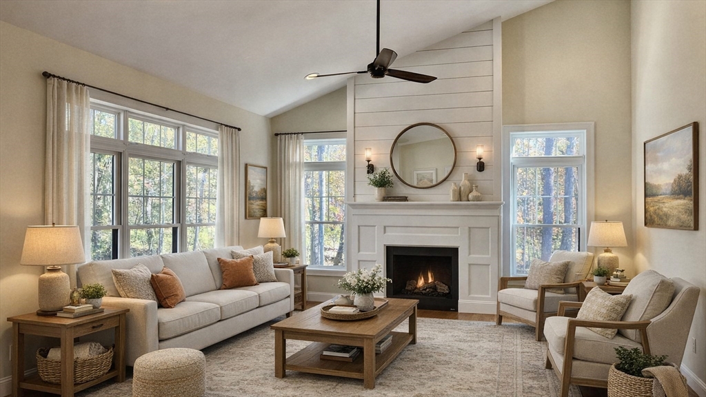 WELCOME TO SPRING! Beautiful and impeccable 3BR/2BA single-level home offering modern amenities, easy living, and timeless appeal. Set on 1.58 acres in a peaceful, quiet neighborhood, this turn-key residence features an open layout with vaulted ceilings, natural light, propane fireplace, and gleaming hardwood floors. The granite kitchen with pantry is perfect for cooking and entertaining. Includes spacious primary suite with double-sink bath and walk-in closet. Two additional bedrooms with full bath and laundry room complete the main level. Enjoy the private deck overlooking landscaped grounds with fenced area for pets. Includes attached 2-car garage and HUGE, heated, clean, dry, walk-out basement with excellent potential for finished space. Ideal for those seeking quality and convenience in a wonderful, historic community known for its charm, culture, and scenic trails. Close to town center and easy access to major routes. Move right in and make it yours today! (AI Staging)