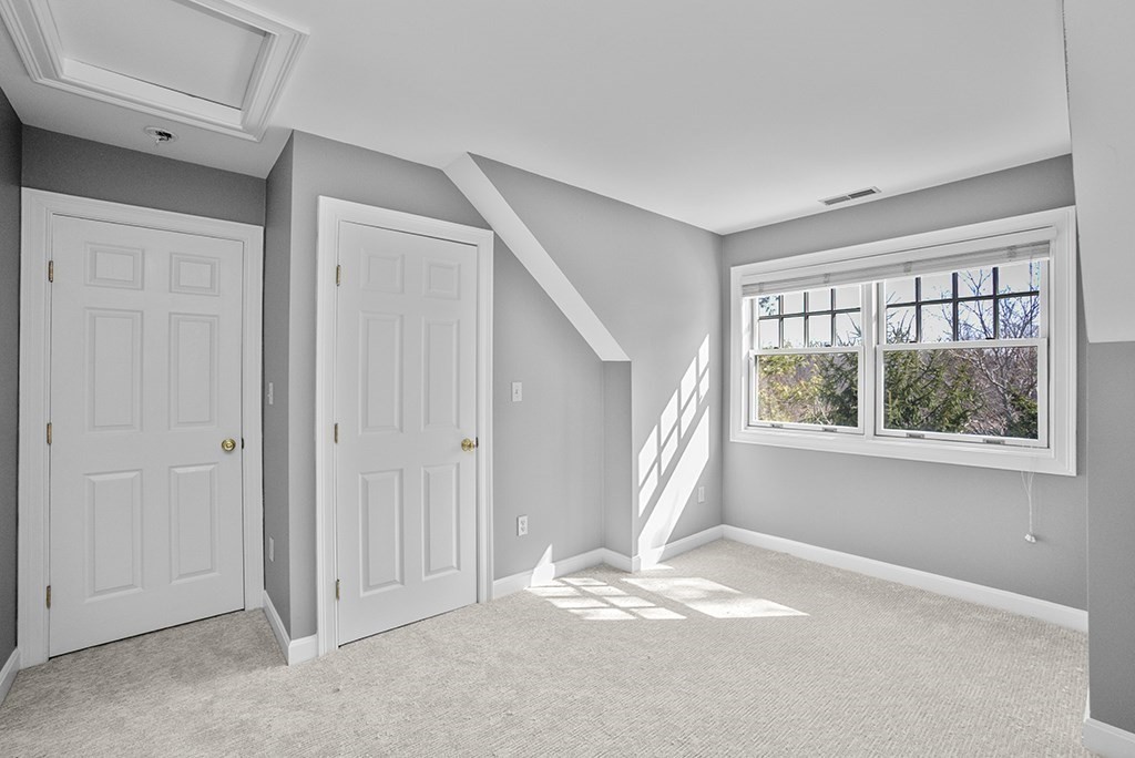 Situated on a quiet cul-de-sac in Newton, this spectacular three-level townhouse abuts the Cohen Conservation Area, offering privacy and direct trail access just minutes from Newton Centre and Chestnut Hill Mall. The main living level features an open floor plan with a hardwood-floored living room with fireplace, dining area, and a kitchen with hardwood floors and stone/granite countertops. The third-level primary suite includes a full bath with double vanity, tiled shower, and hot tub. 4th bedroom, if needed, is on the ground level with a full bath and an adjacent large closet. Additional highlights include 3.5 baths, central air, and new heating and A/C (2025), with oil heat averaging ~$250/month. Walk to bus routes, Bowen School, Wegmans, and shopping. Sizeable two-car garage is a bonus!. Recent updates include Nest thermostat, alarm system, new garage hardware (5-yr warranty, installed July 2025), new rear deck (July 2025), fresh paint and carpeting and hardwood floors (2020).