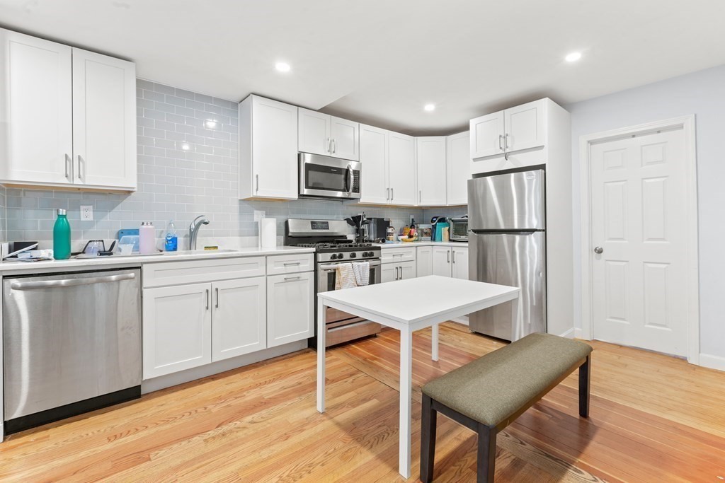 This is a duplex with four bedrooms with an office and two bathrooms, combined kitchen and living space. Benefits include a steel fire escape quaint patio, recent renovations to kitchens and bathrooms, and updated appliances. Conveniently situated, it’s just a short walk to East Broadway’s array of restaurants, bars, shops, and the beach, with easy access to the beach , public transportation and seaport area.