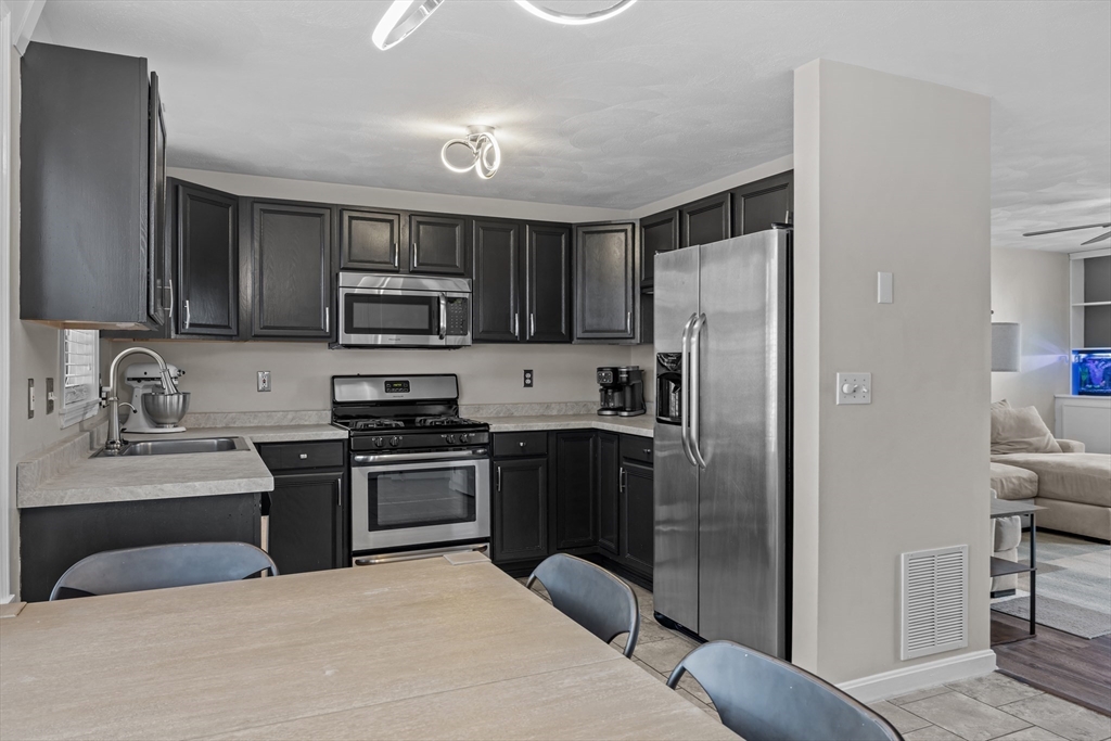 Welcome to DiPalma Estates! Beautiful and move-in ready is what describes this perfectly sized 3 bed 1.5 bath condo that lives just like a single family home. Generously sized living room with gleaming hard wood floors greets you upon entering. The updated eat in kitchen has stainless steel appliances and custom cabinetry with plenty of storage. The open dining area with picture window allows light to pour in while giving views of the patio and landscaped yard area. The second floor offers a front to back style Primary Bedroom with walk-in closet. Two additional bedrooms and a shared bath complete the second level. Attached garage parking, Clubhouse for entertaining and extremely low HOA fees make 103 Juniper Lane ideal living at its finest! DiPalma Estates is a pet friendly community. Convenient location to highways and everything Tewksbury has to offer.