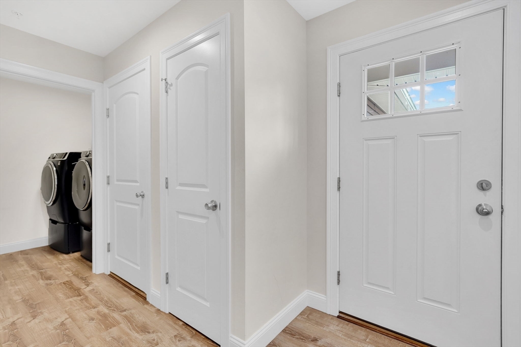 Move right into this stunning 3-bed, 2-bath condo in sought-after Pond View Hollow Village! Offering 1,806 sq ft of bright, open living space, this home features granite countertops, stainless steel appliances, recessed lighting, and a large upgraded 6-ft kitchen island perfect for entertaining. Enjoy custom blinds and curtains, upgraded ceiling fans in every bedroom, and high-end finished bathrooms. The home is meticulously maintained, and truly turnkey. Additional highlights include first-floor laundry, smart home features, a 1-car garage with EV charger, an included high-end washer/dryer, and a full unfinished basement ready for your vision. Prime location right near School Street Park and minutes to I-91, making commuting and daily errands effortless. Enjoy peaceful pond views and low-maintenance living all in one. Don’t miss this upgraded, move-in-ready gem!