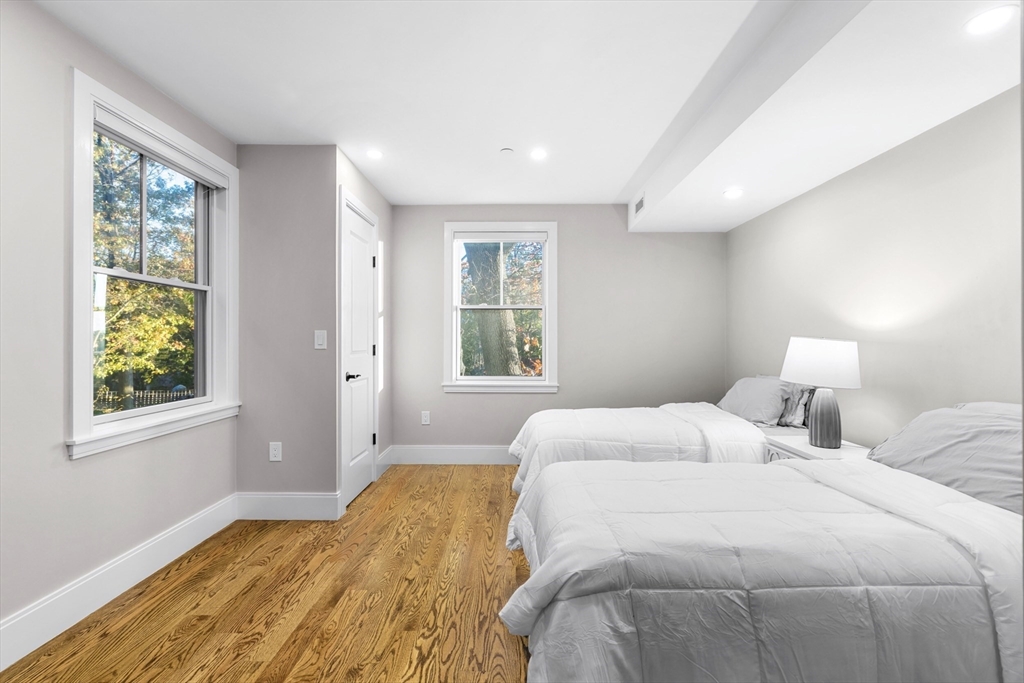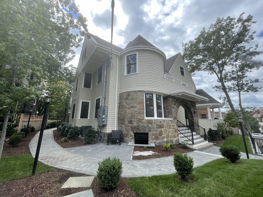 Rare offering at the Historic Selkirk Estate. Recently built luxury townhome blending timeless design with modern convenience. Open floor plan features a chef’s kitchen with premium quartz, custom cabinetry, stainless steel appliances, & an oversized island open to bright dining/living areas. Glass doors lead to a private, wooded backyard with deck, a rare find in this location. Second floor offers two spacious en-suite bedrooms & laundry. The top floor is dedicated to a stunning primary retreat with treetop views, a walk-in closet, & spa-inspired bath. A beautifully finished home theater/media room provides flexible use for entertainment, office, gym, or play. Two deeded parking spaces & a Tesla charging station. Premier residential location near the Brookline line with easy access to the Green Line, Chestnut Hill Reservoir, shops, & restaurants. Exceptional opportunity.