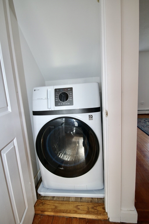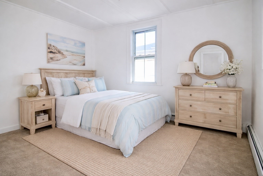 Bright, sun-filled 2-bedroom townhouse-style apartment in the heart of Rockport, featuring hardwood floors, a sunny living and dining area, and light-filled bedrooms with charming period details. Freshly painted and updated with new appliances and a convenient in-unit washer/dryer, this move-in ready home occupies the second and third floors of a well-maintained two-family property and includes off-street parking for one car. Just steps from Motif #1, Bearskin Neck, the Shalin Liu Performance Center, schools, beaches, and scenic coastal walking paths, it offers an exceptional opportunity for year-round coastal living. No pets. No smoking.