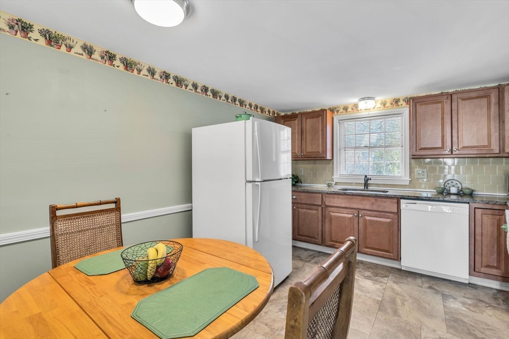 A wonderful home! Situated behind a crisp, white split rail fence near the end of a quiet neighborhood street you come upon this neat and attractive ranch. Beyond the fence, the curb appeal is enhanced by an irrigated front lawn and newly paved drive. This home is beckoning. Once in, you find oak floors throughout a fireplaced living room open to the dining room, and sliders leading to comfortable and insulated three season sunroom that invites you to relax. The kitchen has been updated with wood cabinetry, granite countertops, vinyl flooring and features a small dining area. The bedrooms are good sized and the bathroom clean and bright. With its comfort inside and great, partially fenced yard for outdoor enjoyment; this is a perfect property for anyone wanting a solid home in a pleasant neighborhood setting. You will kick yourself if you wait on this one.