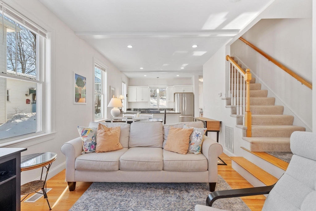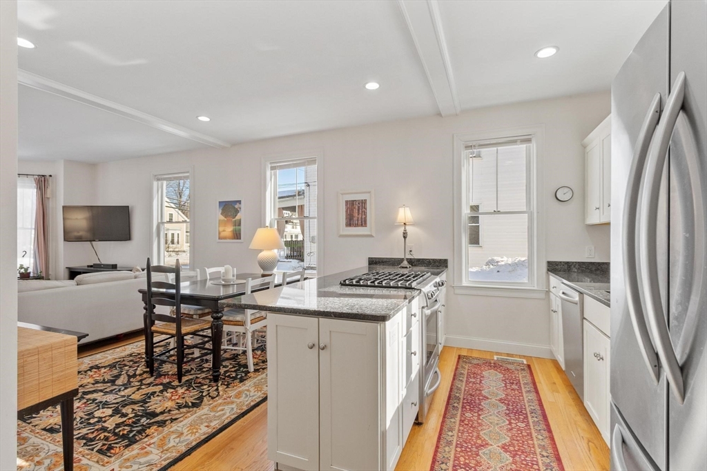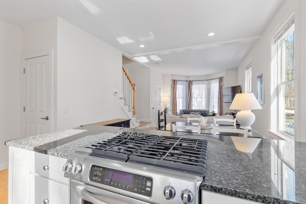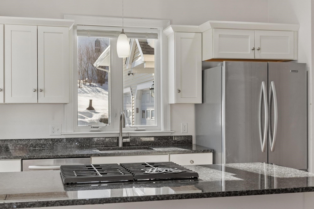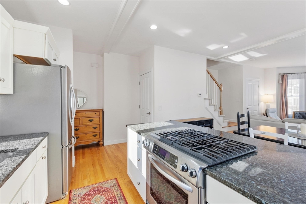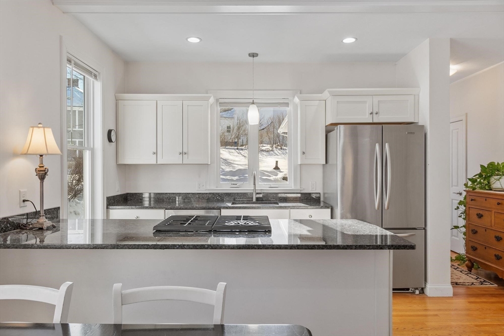 Beautifully remodeled 2-bedroom, 1.5-bath townhouse-style condo in Westford's quiet Graniteville Village neighborhood. One of just two units in a stately Victorian building, this sun-filled home offers the privacy and feel of a single-family residence with the ease of condo living. The open-concept first floor features hardwood floors throughout, a fully updated kitchen with granite countertops, custom white cabinetry, stainless steel appliances, gas range, and a large center island that opens to a bright, generous living and dining area. Two spacious bedrooms upstairs with ample closet space, full bath, and a bonus room perfect for a home office or flex space. In-unit stacked washer/dryer on the second floor for added convenience. Attached garage for private assigned parking. Commuter-friendly location with easy access to Routes 495 and 3. Close to walking trails, conservation areas, golf, and local parks. Pets welcome. Available April 1st.
