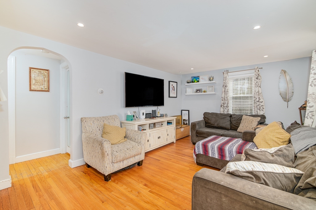 This charming Cape-style home is set on a large lot and offers a wonderful blend of character and functionality. The home features a traditional layout along with a two-room finished lower level, providing additional flexible living space. The sun-filled living room showcases hardwood floors and classic arched doorways, adding warmth and charm. The renovated eat-in kitchen includes a built-in china cabinet, ample cabinetry with generous counter space. A formal dining room with a closet offers versatility and could serve as a fourth bedroom. Upstairs, you’ll find two spacious bedrooms. The finished basement includes two additional rooms ideal for extended living space, a home office, or recreation area.The fenced backyard is perfect for outdoor enjoyment, featuring an above-ground pool, a fenced play area, and a large deck overlooking the yard—ideal for summer entertaining and grilling. The driveway accommodates up to three vehicle. Don't miss out!