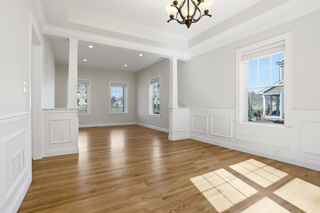 Situated in the highly desirable Durkee Farm Estates, an enclave of 50+ distinctive homes, this elegant 4-bedroom, 2.5-bath residence blends timeless New England architecture with sophisticated modern design. The chef’s kitchen showcases an extended statement island, granite countertops, and custom cabinetry, flowing seamlessly into gracious living and dining spaces ideal for entertaining. Two spacious living areas and two dining spaces offer exceptional versatility. The luxurious primary suite features a spa-inspired bath with a soaking tub, glass-enclosed shower, and double vanity. Set on a scenic view lot with a serene backyard. Convenient to Routes 2 & 495, MBTA commuter rail, The Point’s shopping and dining, and an easy drive to downtown Boston. Thoughtfully designed for comfort, elegance, and everyday living. A rare opportunity in one of Littleton’s premier neighborhoods. Buyer and buyer’s agent to verify all SQFT measurements. Open House: March 28Th & Mar 29th : 2:30pm - 4:40pm