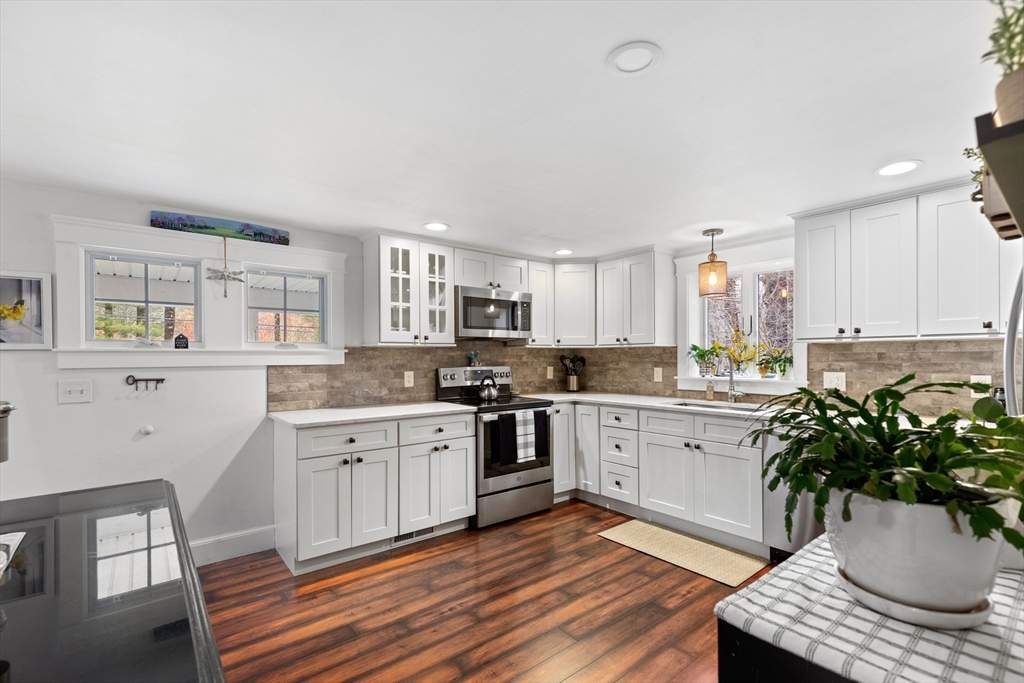If you love nature and privacy, this West Plymouth home is the perfect retreat! Just moments from Little Pond Beach and Morton Park, you’ll have easy access to scenic trails, swimming, fishing, and year-round outdoor recreation. Inside, the home offers a warm and welcoming layout. The 1st floor features a comfortable bedroom and full bath ideal for flexible living. The bright, vaulted-ceiling living room is enhanced by a skylight and a cozy fireplace that create an airy, sun-filled atmosphere.The spacious kitchen opens directly to a charming porch, perfect for morning coffee or effortless entertaining. A mudroom with laundry and a dedicated dining room complete the main level. Upstairs, the front-to-back primary suite provides a true sense of escape, offering a walk-in closet and a generous bathroom with a soaking tub and shower.The partially finished basement adds valuable bonus space, great for a TV room/office/gym or playroom.Close to Rte. 44, 3, Commuter Rail,restaurants and shops.