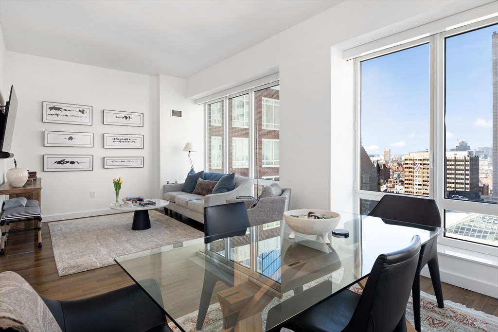 Enjoy living in a stunning, front corner (North + East exposure) 2 bed/2 bath home at The Clarendon, w/views of the Back Bay, Charles River, Cambridge, and Midtown. The light filled unit boasts walls of expansive windows, 9 foot ceilings, windowed kitchen with gas cooking and high end appliances. Recent upgrades are impressive: refinished floors, prof. installed Lutron electric window shades, media system, all custom closets, new (to studs) guest bath + updated lighting throughout. Primary bedroom w/en-suite bath and 2 generous custom closets (one walk-in). The Clarendon is a 24/7 concierge + doorman building w/ prof. mgmnt on site, fitness center, lounge, children's playroom, landscaped, furnished terrace w/grills, conference room and clubroom w/private deck. 1 Valet pkg incl. Walk to the best shops, restaurants and Back Bay Station (Acela, Amtrak, Commuter Rail, MBTA). Easy highway access (90+93). Designed by Robert A.M. Stern Architects, Related Mgmt.