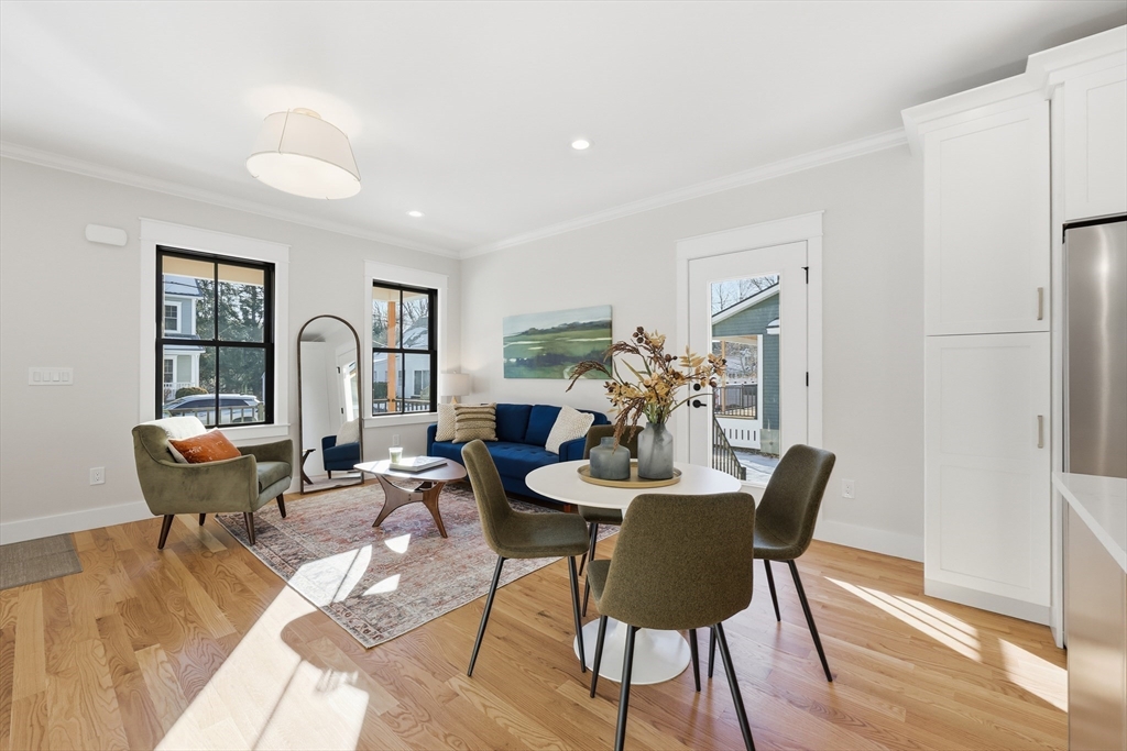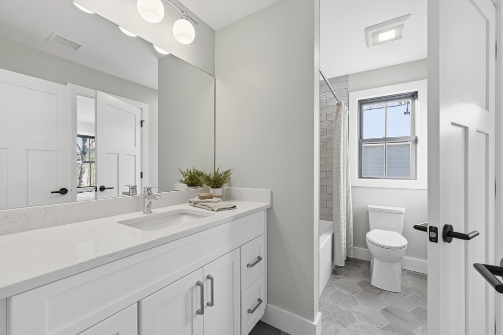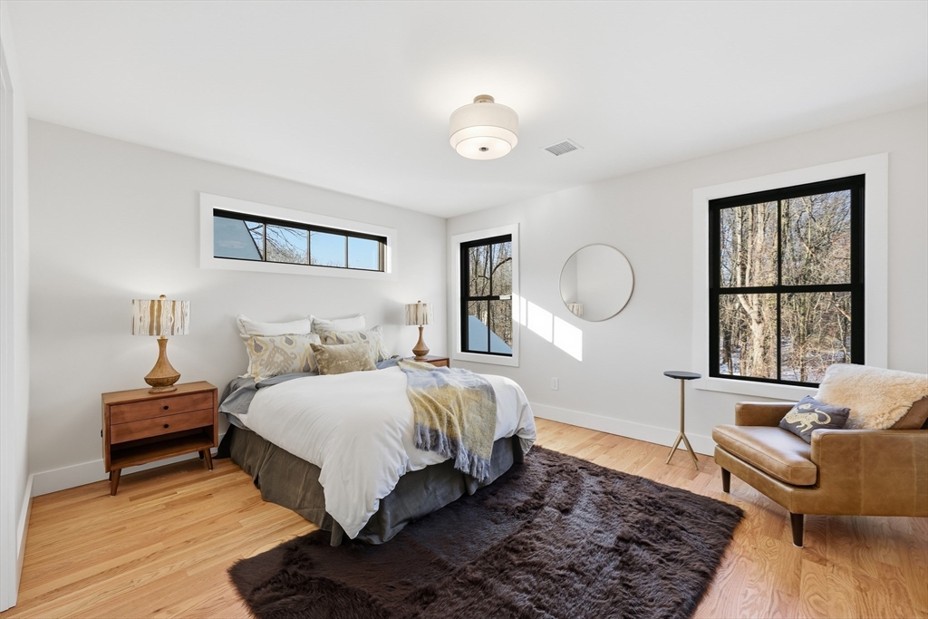 New construction in Northampton. This custom-built Colonial is just minutes from downtown, the colleges, major routes, and within walking distance to Maines Field and Lilly Library. The home backs directly to conservation land, providing a private, natural setting.Hardwood floors run throughout the main living areas. The kitchen features quartz surfaces, dove-white shaker cabinets, a generous center island, and stainless steel appliances. The first-floor primary suite includes a bath with a custom-tiled shower and a heated floor.Upstairs are three bedrooms and a full bath. Additional highlights include first-floor laundry, ERV and radon mitigation systems, EV-ready detached garage, full basement with expansion potential, and a Goshen stone patio.Built to modern energy-efficiency standards for long-term comfort and performance.