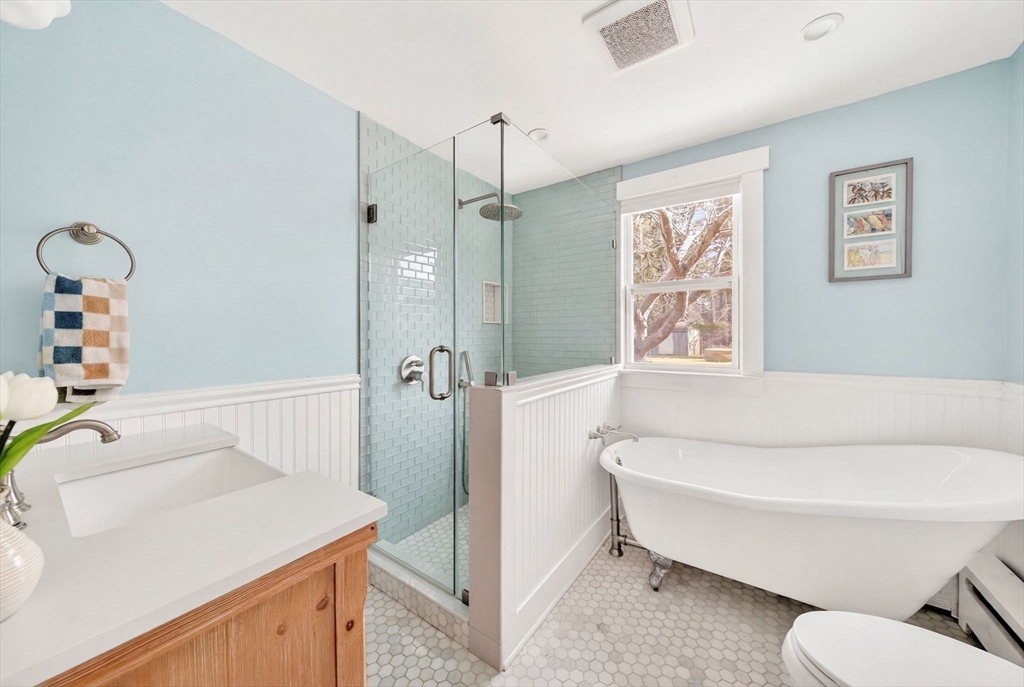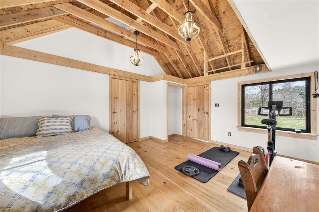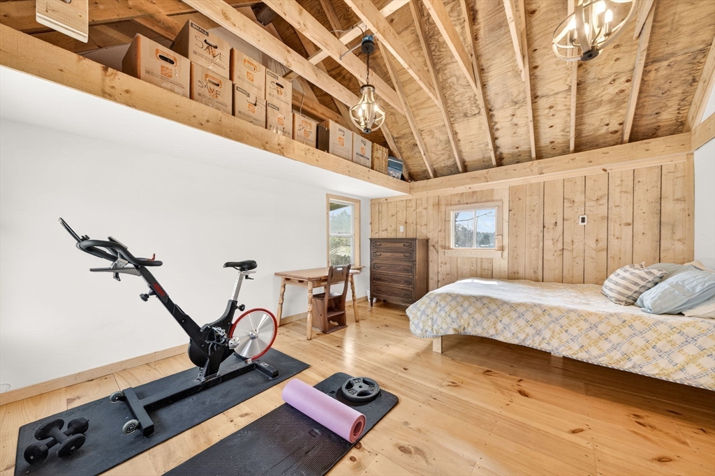 Nestled on 1.39 acres of cleared land, this charming farmhouse offers a peaceful retreat with thoughtful modern upgrades throughout. Step inside to a bright, newly renovated kitchen that blends classic style with contemporary convenience, featuring an induction stove, farmhouse sink, granite countertops, and custom cabinetry. The main level continues with a dining area and a spacious living room. Also on the main floor, you’ll find a beautifully updated bathroom complete with a custom glass shower and soaking tub. Upstairs, a warm and inviting landing leads to two cozy bedrooms. Outside, the property truly shines. A detached barn/garage provides ample space for a large vehicle, workshop area, and additional storage. It also includes a partially finished space ideal for a home gym, artist’s studio, guest overflow, or creative retreat—the possibilities are endless! This unique property combines rustic charm with modern comfort, all set in a serene and peaceful setting.
