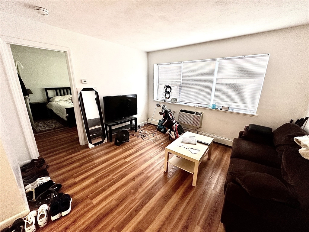 Charming garden level 1 bedroom, 1 bathroom condo located in a well-maintained complex with lush green grounds and a sparkling swimming pool. This inviting unit features a spacious living room, a semi-modern kitchen with ample cabinetry, and a generously sized bedroom with great closet space. The low condo fee includes heat and hot water, making for easy and affordable living. Ideally situated in desirable West Roxbury, just minutes to the vibrant Spring Street area with shops, restaurants, banks, and everyday conveniences. Excellent commuter location with easy access to bus routes and the commuter rail. Priced below market for a quick sale. Being sold with a tenant at will in place, offering immediate rental income and strong investment potential. A fantastic opportunity for investors or future owner occupants seeking value, convenience, and long term upside in a sought after neighborhood. A deal like this only comes once in a lifetime, do not let it slip by.