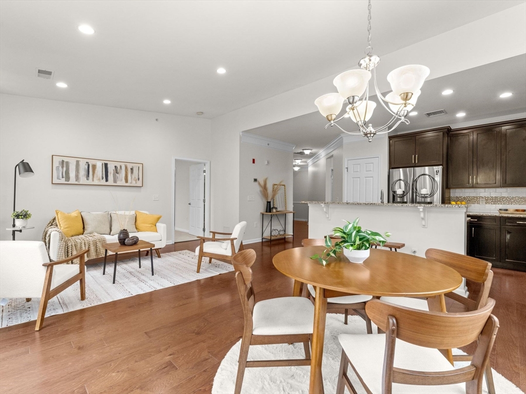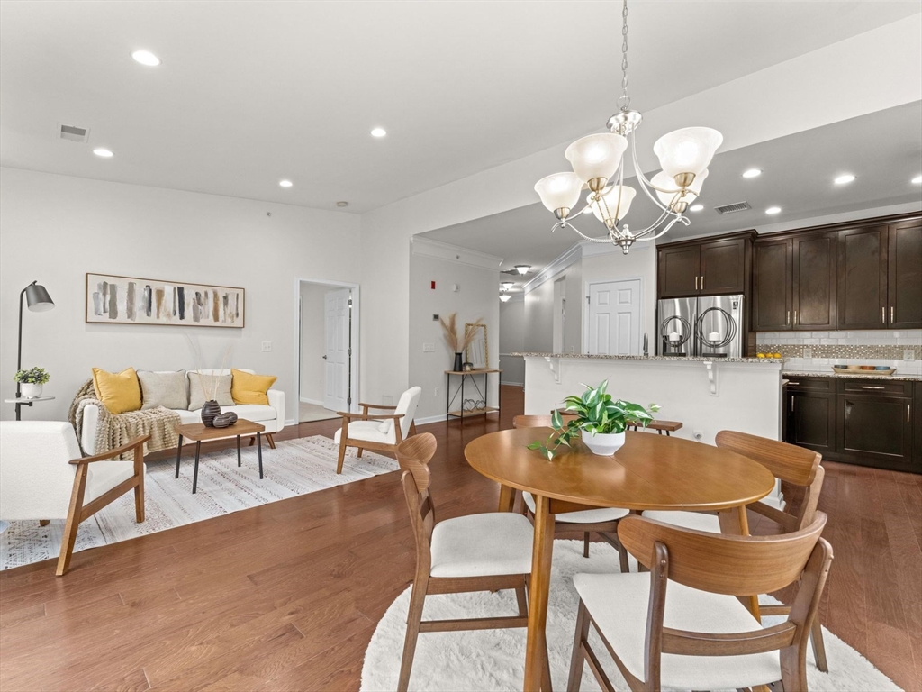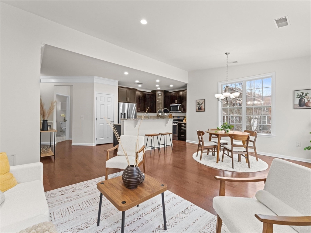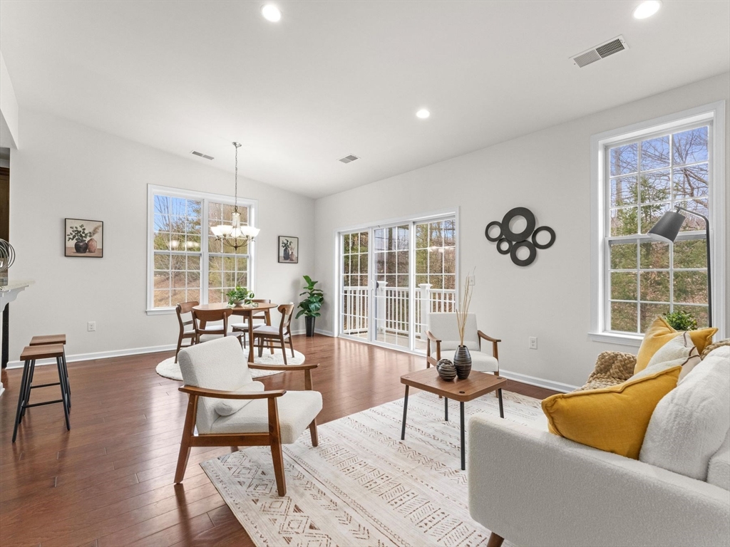 Welcome to this bright and spacious Charles corner unit in the highly desirable Westborough Village. Enjoy an open floor plan with upgraded engineered hardwood floors in the living and dining areas, flowing to a private balcony with picturesque views. The kitchen features granite counters, stainless steel appliances, and upgraded cabinets. Primary suite offers soaking tub, shower, and walk-in closet, plus a guest bedroom with full bath. Other highlights include in-unit laundry, dedicated furnace & A/C, roughed-in security/TV wiring, and exclusive storage. Unit comes with 1 deeded parking spot and plenty of visitor parking, conveniently located near Rte 9, Westborough Commuter Rail, shopping, and dining. Perfect move-in ready home!