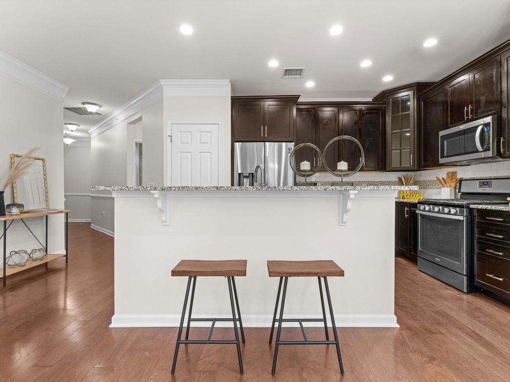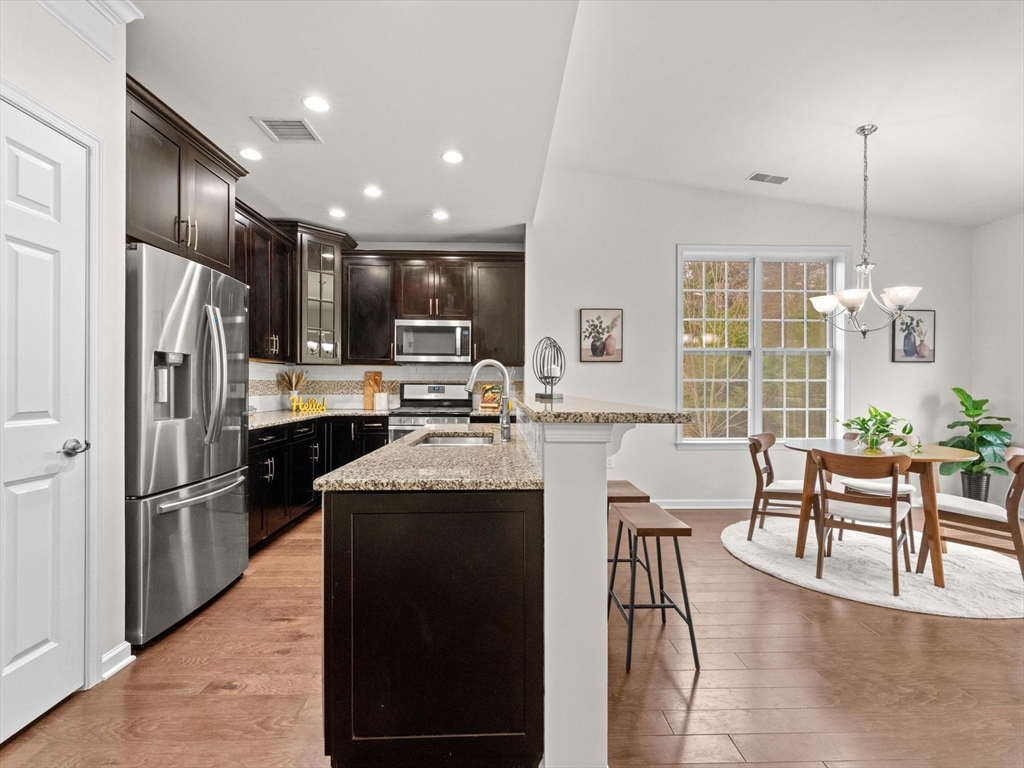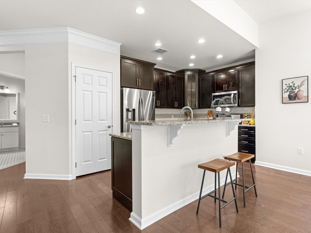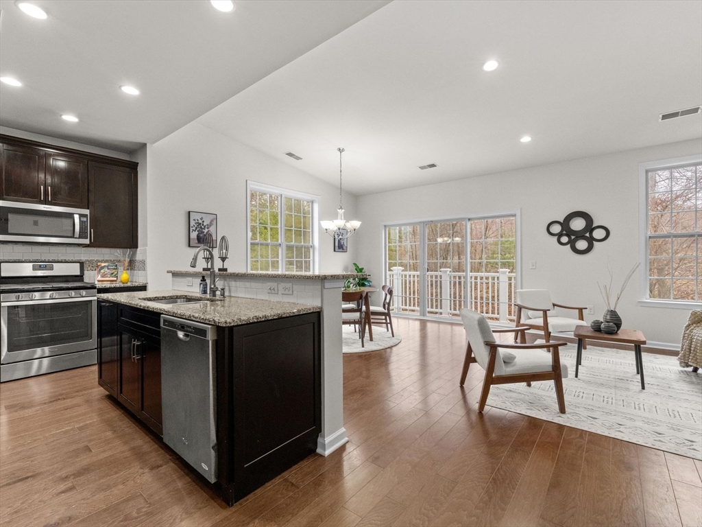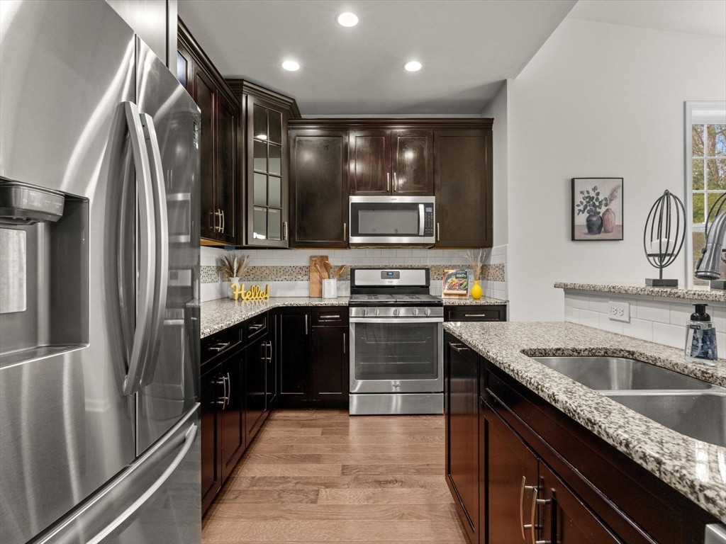 Welcome to this bright and spacious Charles corner unit in the highly desirable Westborough Village. Enjoy an open floor plan with upgraded engineered hardwood floors in the living and dining areas, flowing to a private balcony with picturesque views. The kitchen features granite counters, stainless steel appliances, and upgraded cabinets. Primary suite offers soaking tub, shower, and walk-in closet, plus a guest bedroom with full bath. Other highlights include in-unit laundry, dedicated furnace & A/C, roughed-in security/TV wiring, and exclusive storage. Unit comes with 1 deeded parking spot and plenty of visitor parking, conveniently located near Rte 9, Westborough Commuter Rail, shopping, and dining. Perfect move-in ready home!
