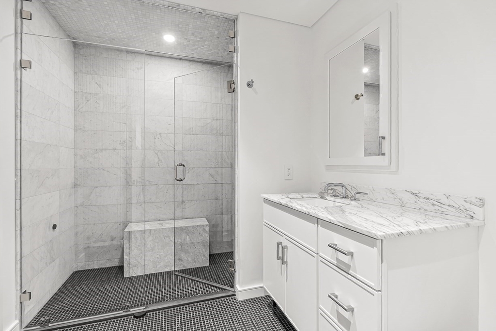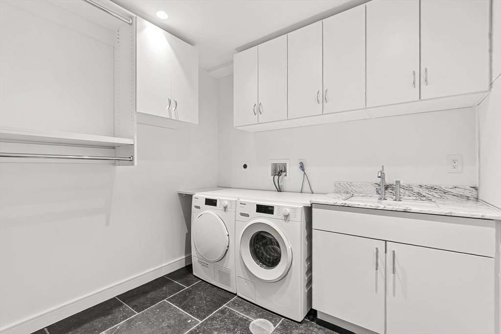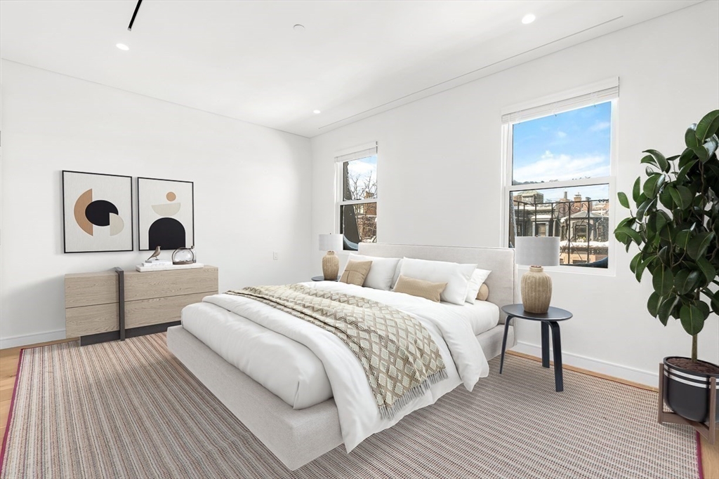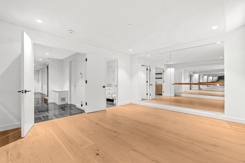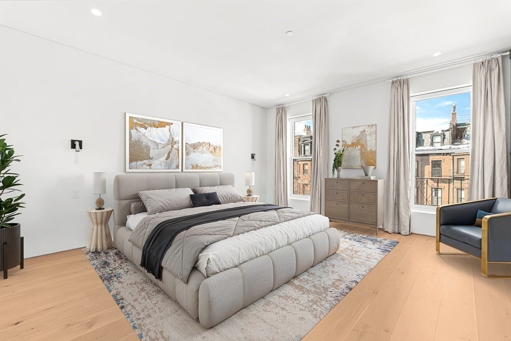 Welcome to 126 Marlborough Street, a luxurious single family residence that combines a historic pedigree with modern livability, privacy, and ideal positioning mid-block between Clarendon and Dartmouth Streets. This turnkey nearly 5,000 sq. ft. four bedroom row house features an attached garage plus driveway parking, glass elevator to access all five floors, two south-facing living spaces with gas fireplaces and grand 11’+ ceilings, a formal dining room with auxiliary kitchen, and primary kitchen with Gaggenau appliances, front-facing oriel windows, and dining area. The floor-through primary suite offers a gas fireplace, two walk-in wardrobe rooms, and two full marble baths with heated floors and spa-inspired wet room. Outdoor amenities include a full-length roof deck under the Boston skyline with outdoor kitchen and gas fire pit, plus a terrace off the living room. A one-of-a-kind property, 126 Marlborough Street is tranquil yet central to all the Back Bay neighborhood has to offer.
