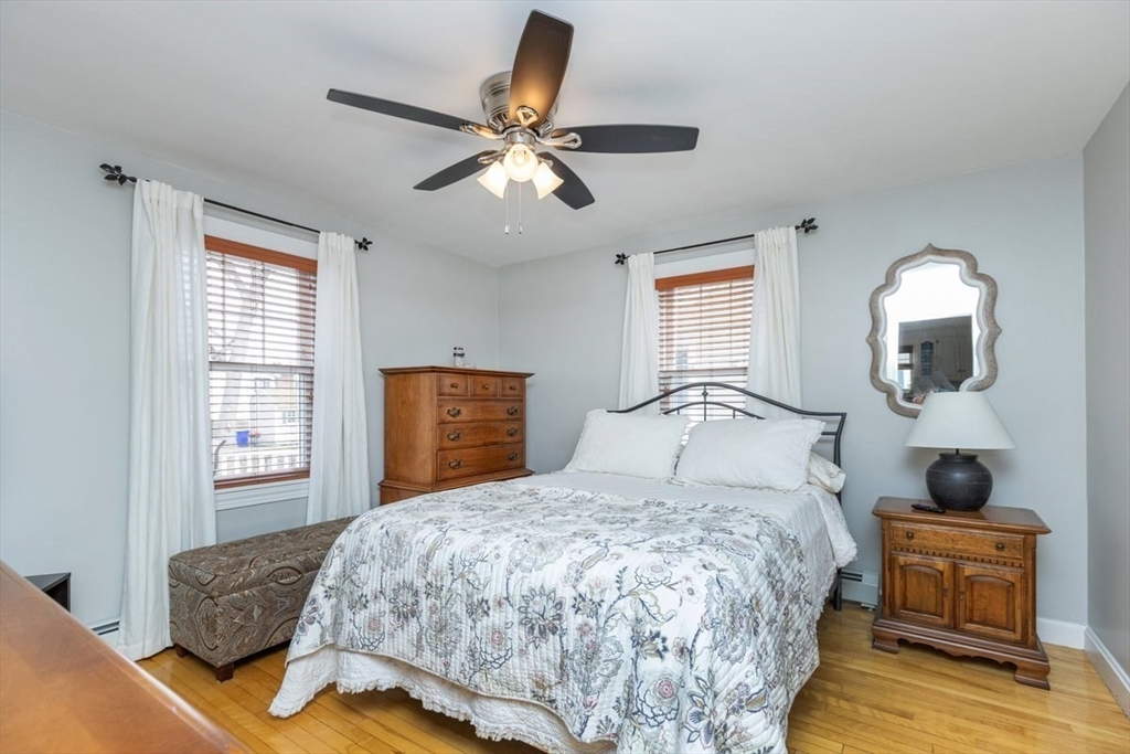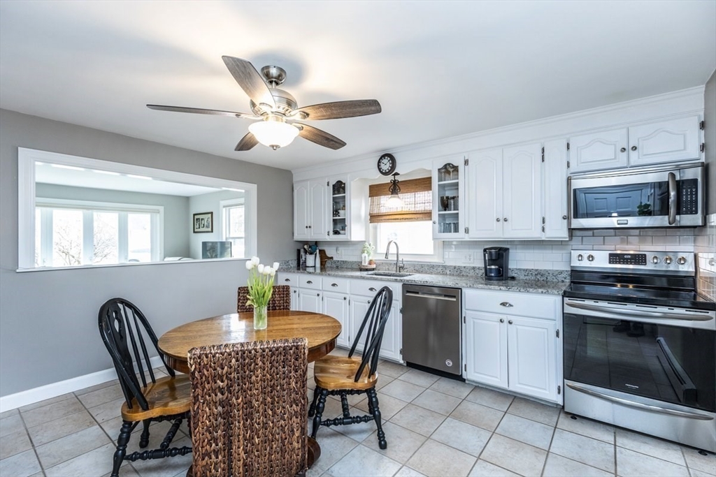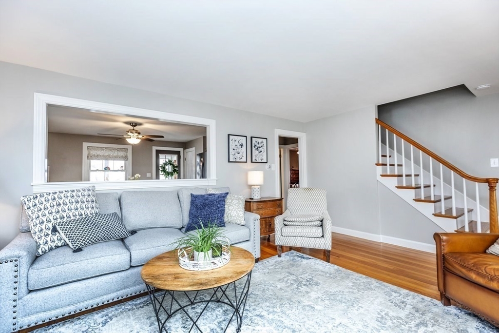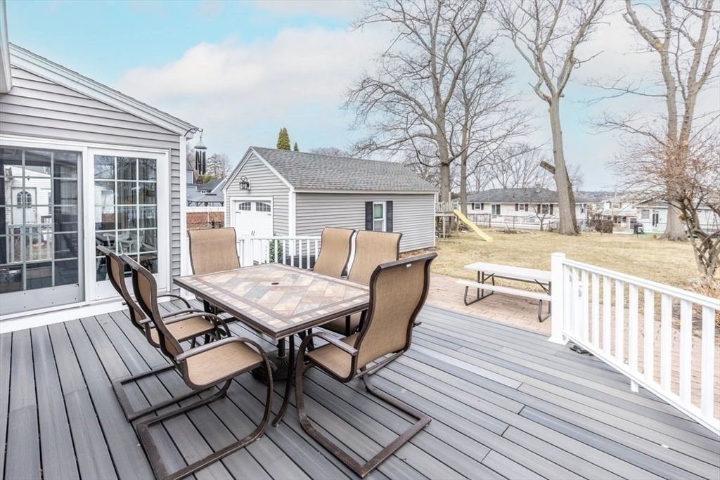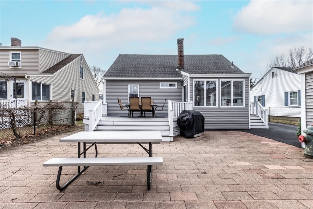 Pride of ownership is evident inside and out in this single-family residence, which is truly ready for immediate enjoyment. This seven-room Cape is a delight to show. Step inside to the living room which is bright and cheery, featuring gleaming h/w floors and a bow window. Spacious eat-in kitchen with newer cabinets, granite counters, stainless steel appliances is the perfect place for enjoying meals. There is a first-floor primary bedroom and a Dining room with h/w flooring that can also be used as a bedroom. The upper level consists of two bedrooms and a half bath. The downstairs features a finished family room with tile flooring and a utility room for extra storage.Enclosed sun porch that overlooks the Trex deck and patio area. Perfect for summer BBQ's and entertaining backyard is completely fenced in with a swingset and a detached garage. Front yard has irrigation. This home is move-in ready! Great commuter location with close access to highways.Showings begin at open house.