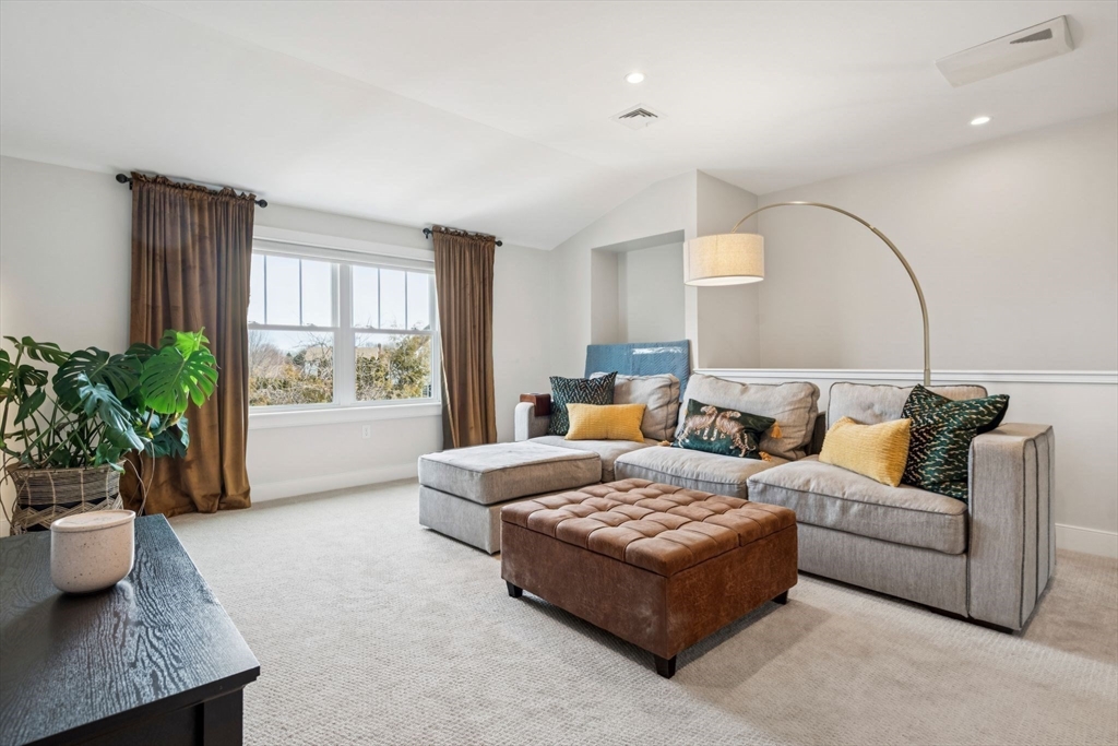 Welcome to Primrose, a premier 55+ community where luxury meets a vibrant and low-maintenance lifestyle. Built in 2022, this like-new townhouse is designed for those ready to trade yard work for leisure and connection. The heart of the home is a stunning open concept living space featuring vaulted ceilings and oversized windows that bathe the interior in natural light. Sophisticated finishes define the home, from the cozy gas fireplace to the gourmet kitchen outfitted with Bosch stainless steel appliances. Designed for long-term comfort, the layout features a first floor primary suite and convenient first floor laundry. Host friends in the upstairs lounge or retreat through sliding glass doors to your private back deck for a quiet evening. With an attached 2 car garage with epoxy floor and an association that handles all snow removal and landscaping, you are free to enjoy the community atmosphere. Experience the perfect balance of privacy and neighborly charm in this effortless home.