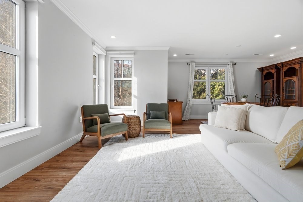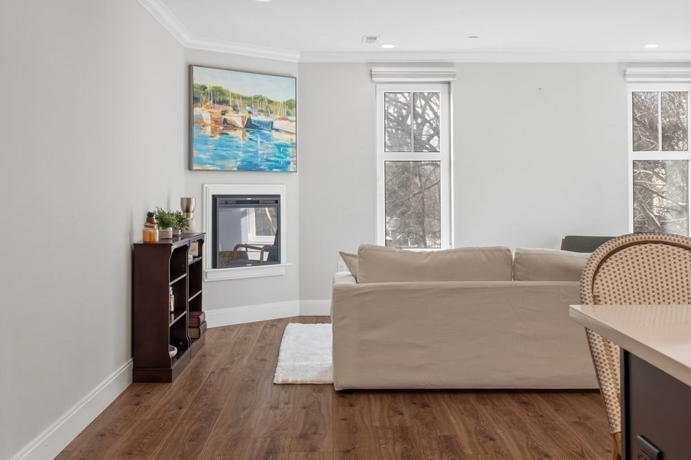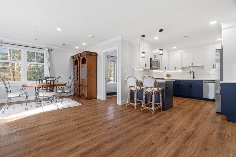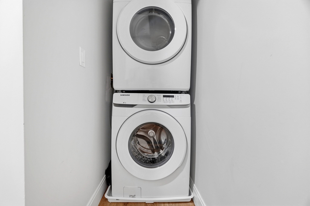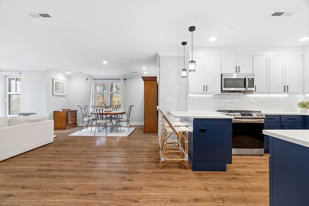 Stunning 2 bedroom, 2.5 bathroom condo with TWO covered garage parking spaces in the heart of West Roxbury. Exceptional design, upscale finishes make it a turn key unit. Thoughtfully designed open living concept flows from the eat in kitchen to living area with bonus space for a dining table. Walking distance to the commuter rail, short ride to Forest Hills and on the bus route. Brand new 2022 construction offering beautiful quartz with lovely island, sleek shaker cabinets, stainless steel appliances, and gas cooking. The primary suite is spacious with double closets and an en suite bathroom. The second bedroom is light and bright and also has an en suite. Laundry in unit is tucked away nicely and adds convenience in the half bathroom. Extra storage in unit and TWO covered garage parking spaces. Located in a Foodie's paradise next door to the Porter, across from West, walking distance to the Boston Alehouse and Knoll Street Cafe. Close proximity to Roslindale, JP & Longwood.