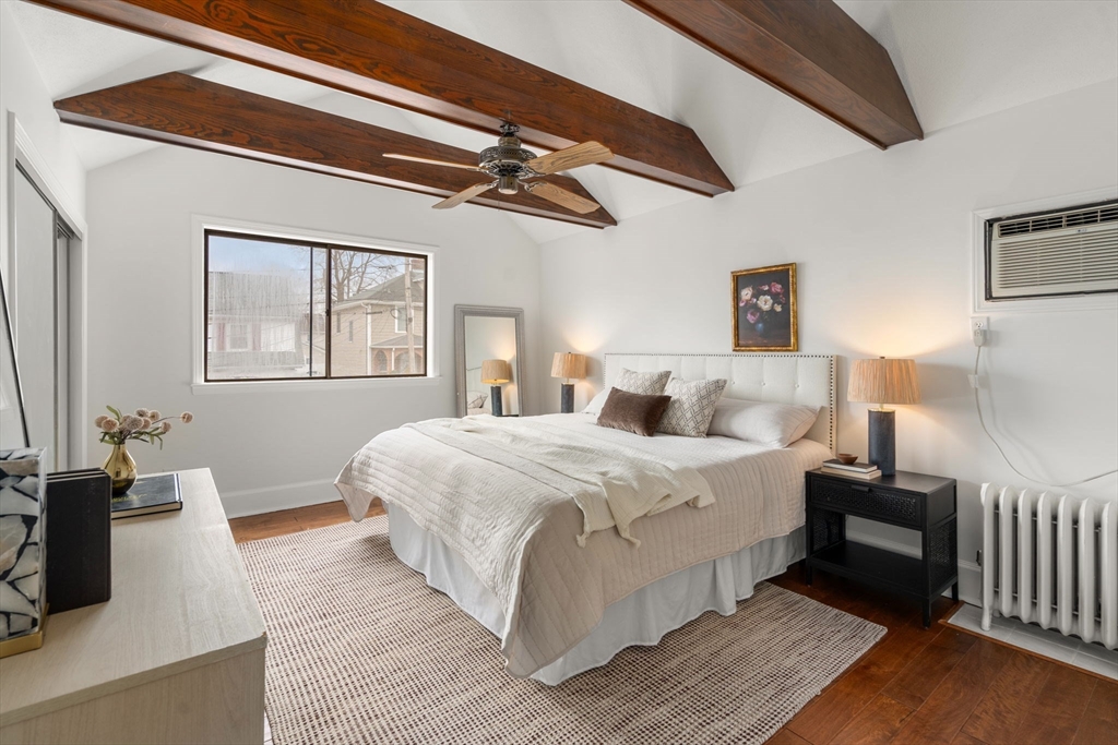 Refreshed and move-in ready, this 3 bed, 1 bath home offers over 1,500 sq ft of bright, well-designed living space plus nearly 500 sq ft of bonus finished attic space ideal for a second living area, home office, play area, or guest space. The main level features hardwood floors, an open living/dining layout, and an updated kitchen with all stainless steel appliances and gas cooking. The primary bedroom features cathedral ceilings with exposed beams. A four-season heated porch provides excellent added flexibility for year-round use. Enjoy abundant natural light and generous closet space throughout. Highlights include 1 deeded garage parking space and 1 deeded driveway spot, basement storage, and a common shared yard. Located in the highly desirable Lowell School district near the Belmont line with easy access to Watertown Square, Arsenal Yards, public transportation to Harvard Sq and Boston, and major routes including Storrow Dr, Route 2, and I-90.