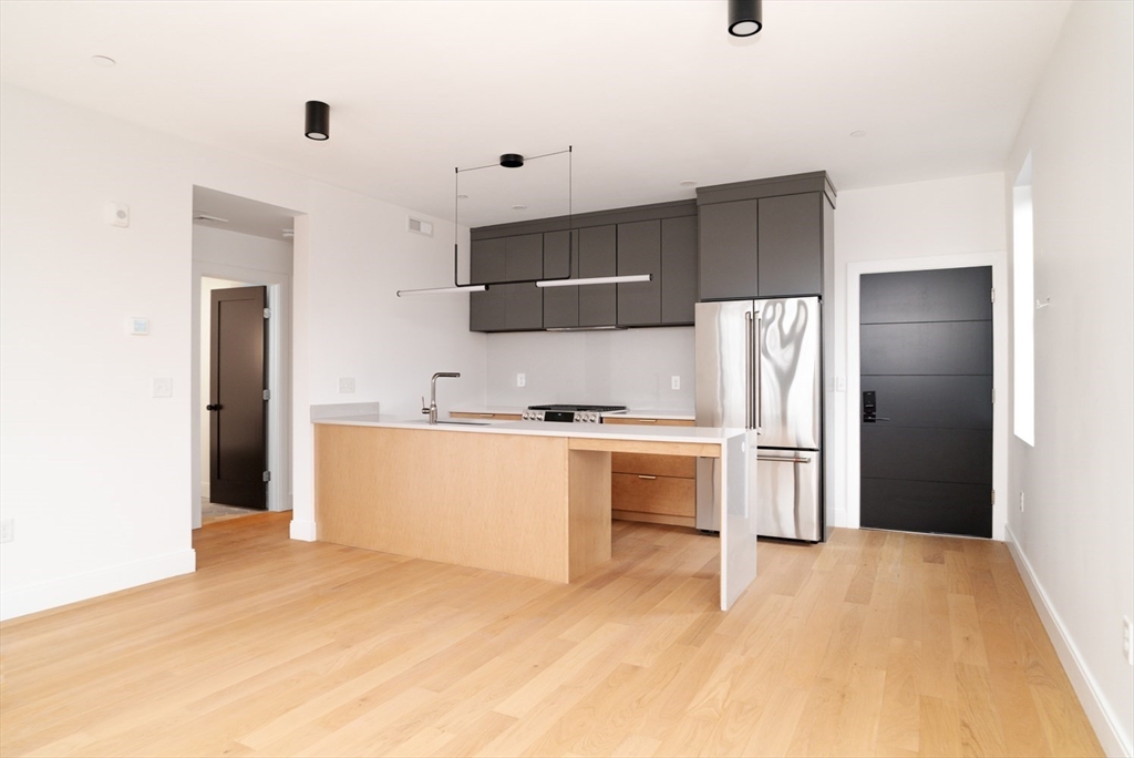 Experience elevated city living in this meticulously designed top-floor new construction 2-bed, 1-bath home in the heart of Somerville. A sun-filled open layout flows into a designer kitchen with GE Café appliances, gas range with double oven and air fryer, built-in microwave, and custom cabinetry. High-end finishes include Grohe fixtures and curated materials throughout. Spacious bedrooms offer comfort and flexibility. Mitsubishi Hyper Heat ensures year-round efficiency. Enjoy a private roof deck with sweeping Boston skyline views, perfect for entertaining or relaxing. Smart features include face and palm recognition entry. Ideally located near Union and Inman Squares, transit, and top dining, this turnkey home offers modern luxury in a vibrant neighborhood. Bike Stoage also available.