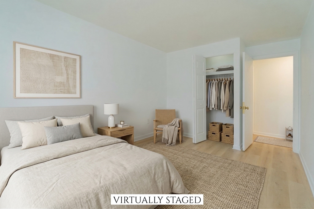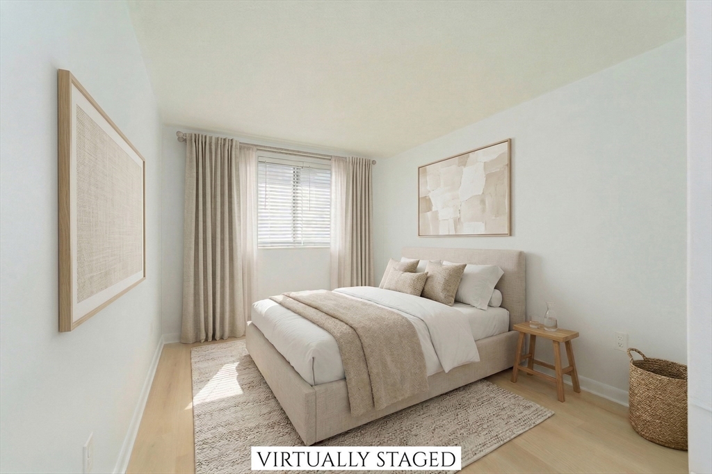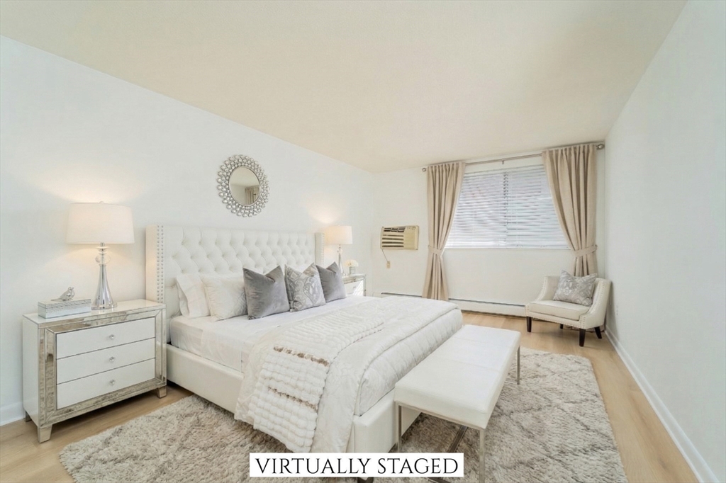 811 sq. ft. 2-bedroom, 1-bath condo located less than a mile from the beach. The layout features a large primary bedroom with a spacious walk-in closet and a functional second bedroom. Building amenities include an in-ground pool, gym, sauna, and tennis courts. This unit comes with two off-street parking spaces. Conveniently situated near local shops, public schools, and transportation. A straightforward, well-located home with practical features.
