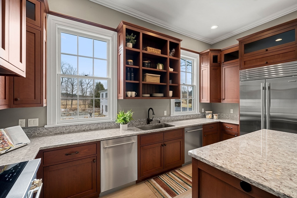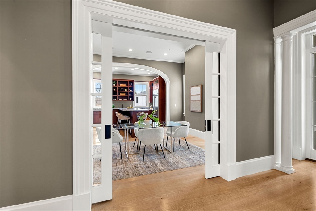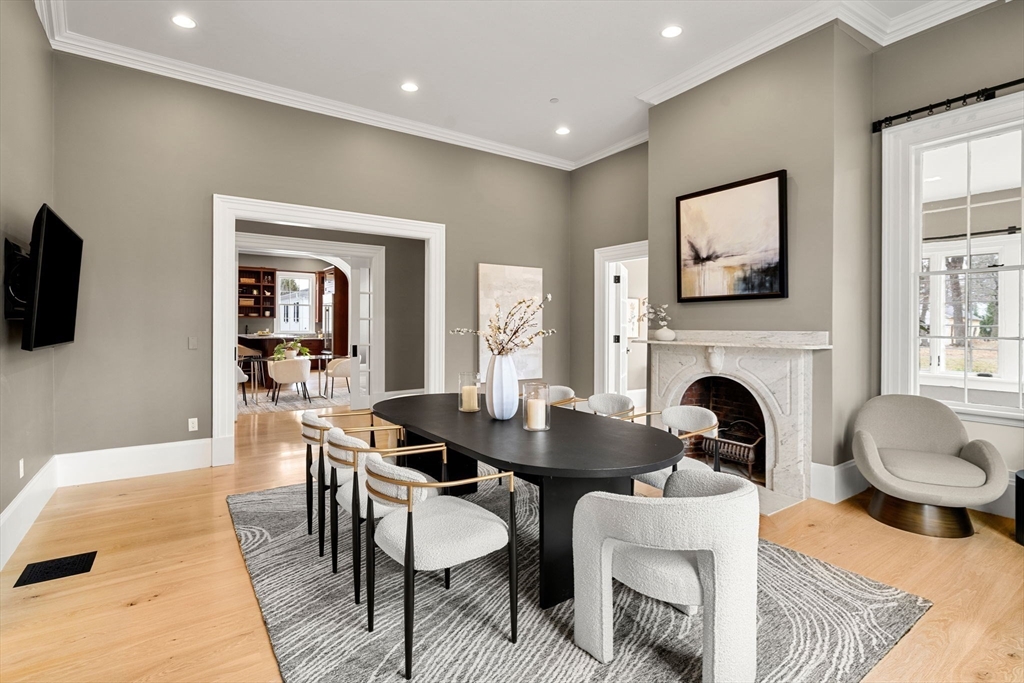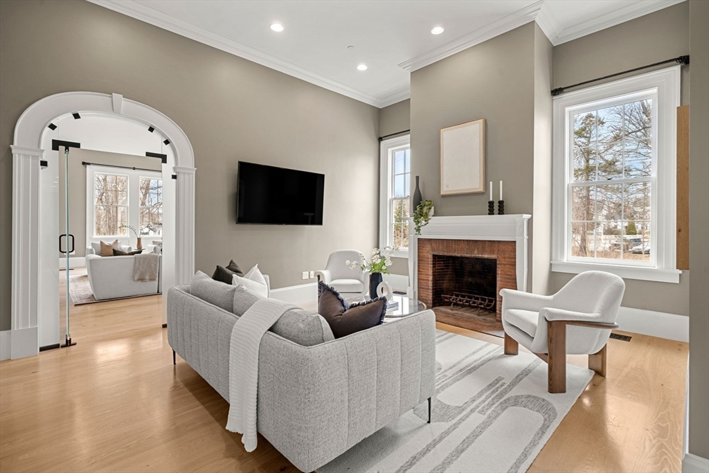 Grandly set in the heart of Groton Center, “Hollingsworth House” estate w/carriage house offers a rare blend of timeless grandeur & refined luxury. A masterful restoration completed in 2021 showcases a level of finish, materials & craftsmanship that surpasses new construction. Soaring ceilings, exquisite custom moldings,arched details, rich millwork, elegant pocket doors, glass doorknobs & striking stonework define the home.The 1st floor offers 6 beautifully appointed rms, 3 original fireplaces, including a private bedroom w/adjacent sitting rm & full bath.The 2nd level features 3 spacious bedrooms, each ensuite, walk-in closets w/custom cabinetry & an exceptional laundry rm. A glass elevator adds modern convenience. Sunroom w/walls of windows, walk-up attic & high-efficiency systems enhance the home. Finished walk-out lower level w/speakeasy ambiance & baths offers endless possibilities.Circular drive, stunning carriage house & exceptional grounds complete this distinguished offering.