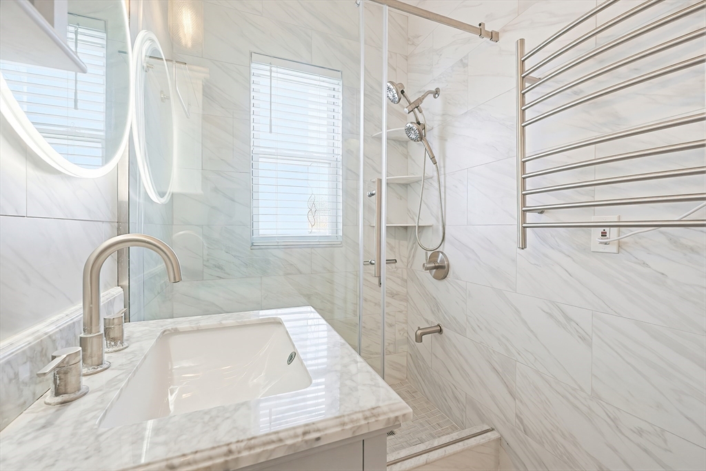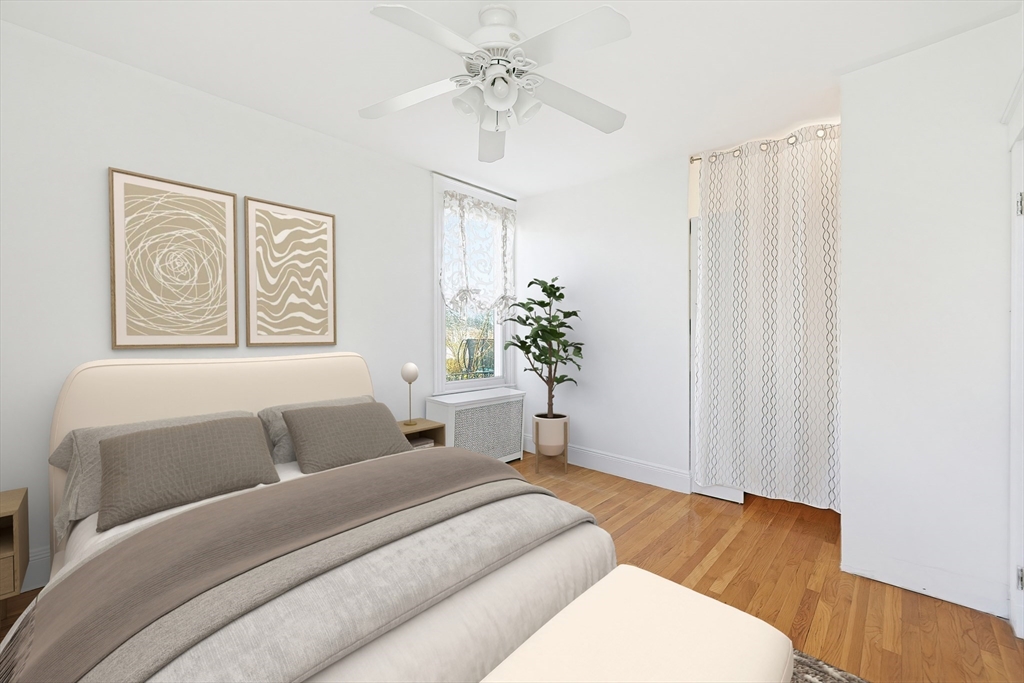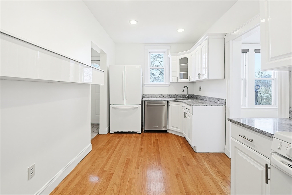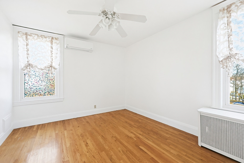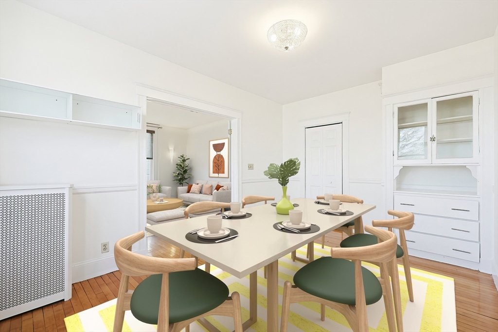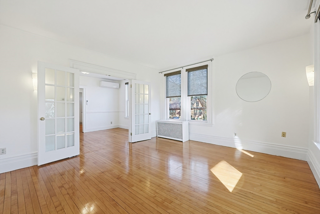 Welcome to this sun-filled condo in one of the most charming colonial residences on White Street. Set well back from the street and perched atop a garden hill, this first-floor condo has its private entrance to the driveway and features gleaming hardwood floors and high ceilings throughout. The modern kitchen opens to a bright dinning room that flows to a spacious living room featuring beautiful French doors and grand window trims. A refreshed full bathroom and a sizable bedroom with walk-in closet complete the comfortable single-level living. Recent improvements: 2018 water heater; 2021 bathroom retiling, new kitchen countertop, new roof; 2022 mini-split AC. Plenty closet space in-unit along with dedicated storage in shared basement. Deeded two car tandem parking in the backyard. One pet per unit. This is a perfect starter home or downsizing retreat to enjoy the wonderful amenities around Waverley Square, e.g. retails, schools, parks, and public transit, etc. all within minutes' walk!