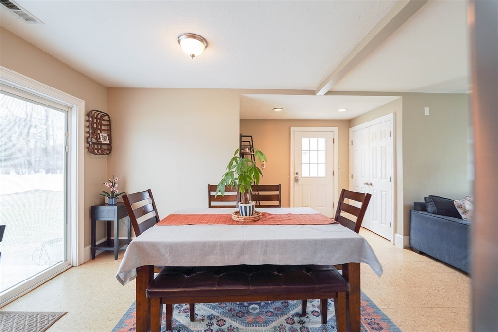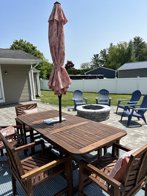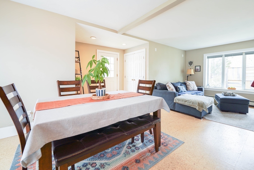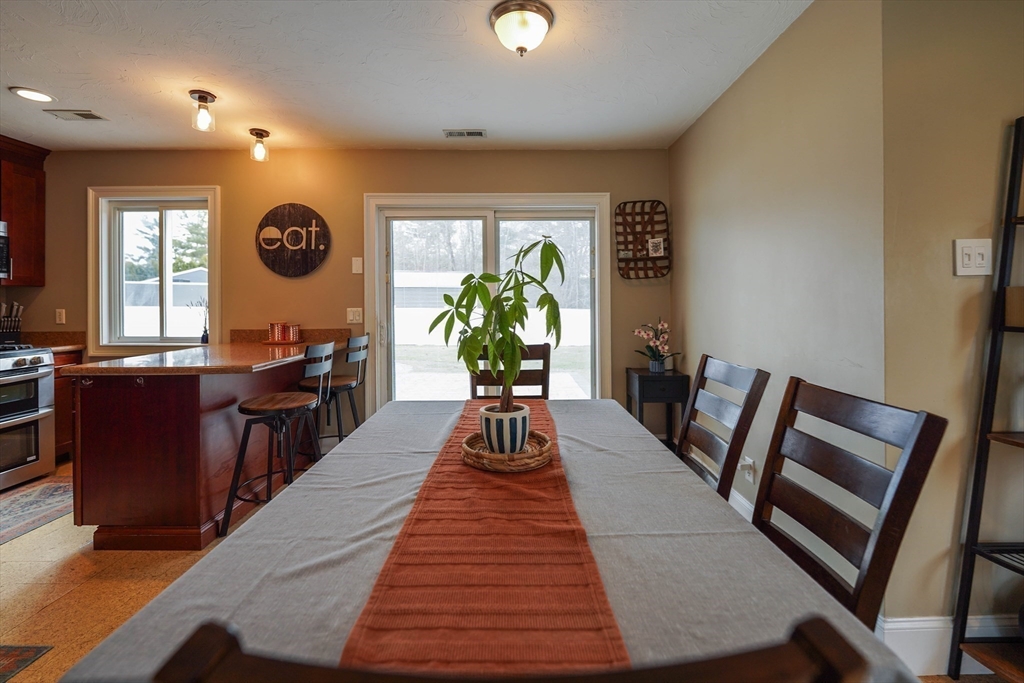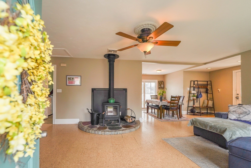 Welcome to this exceptional & spacious 4-bedroom, 2-bath home located just minutes to Padanaram Harbor & Round Hill Beach. Offering the perfect blend of charm and everyday convenience, this home is ideal for year-round living. Step inside to a thoughtfully designed open floor plan filled with natural light. The eat-in kitchen features stainless steel appliances, ample cabinetry, and generous counter space-perfect for both casual meals and entertaining. The adjoining living room offers great versatility & features a cozy wood stove, creating a warm and inviting space. The main bedroom is a true retreat with cathedral ceilings, a walk-in closet, and a private ensuite bath. Three additional bedrooms provide flexibility for family, guests, or a home office. Hardwood and cork runs throughout much of the home, central air, first floor laundry, detached two car garage. The amazing fenced backyard has a large patio for warm weather entertaining. Many updates throughout. Ample basement storage.