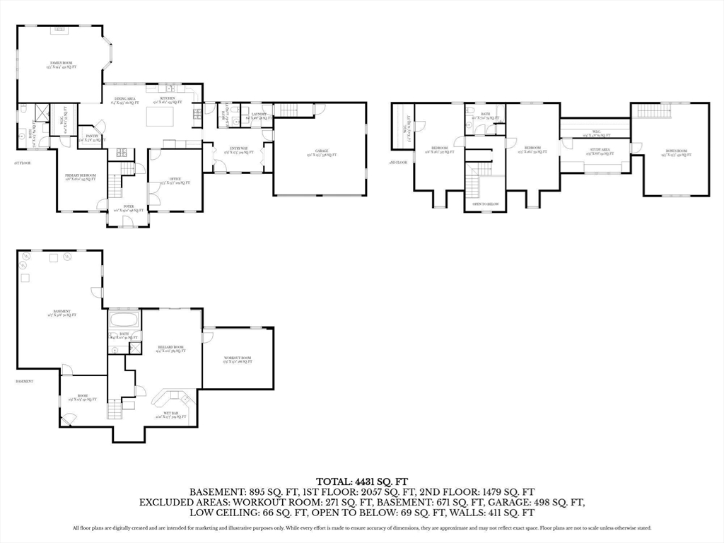 FIRST SHOWING SAT 3/28 OPEN HOUSE 12-2 This home offers amenities rarely found in one property. 3 bedrooms plus multiple finished bonus areas adding to potential of Multi-generational living. Main level features a first-floor mastersuite complete with tiled rain shower and walk-in closet. Formal dining room, 1st flr laundry, mudroom, and large kitchen with its own indoor grill. The living room overlooks the spectacular yard. Upstairs, you'll find 2 large bedrooms, full bath, office and above the 3-car garage, a finished great room accessed through a hidden bookcase! Your own private retreat, office, or media space. The finished walk-out lower level adds even more with a full bath and additional rooms, opening directly to the patio and fenced backyard. Outdoors is where this property truly shines: a heated pool, hot tub, half basketball court, and beautiful grounds create a private resort-like setting. POOL HOUSE has a full bath, kit setup and mini split! Generator, EV charger in place.