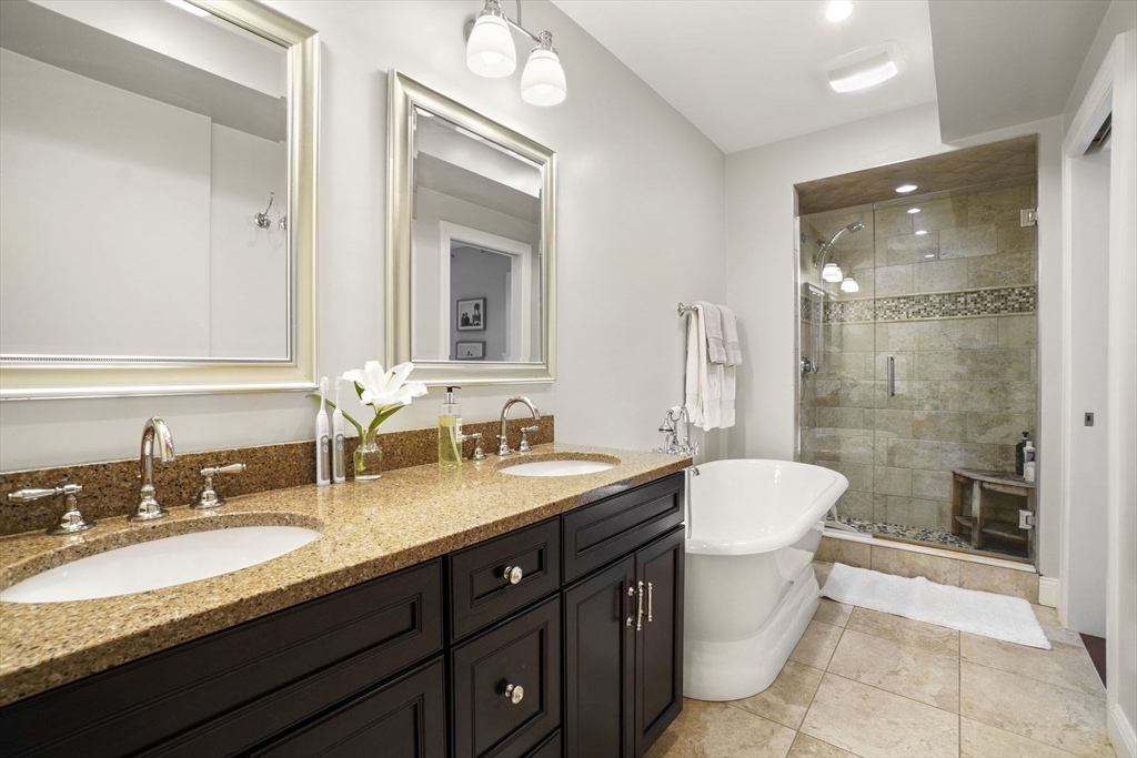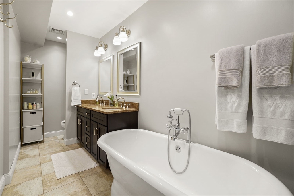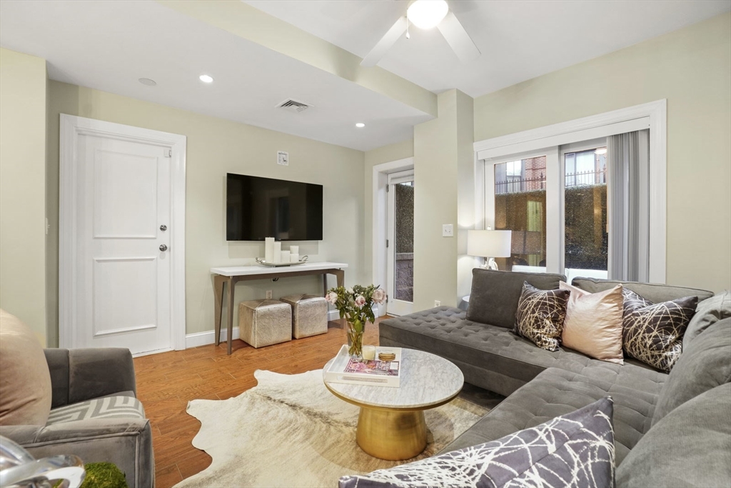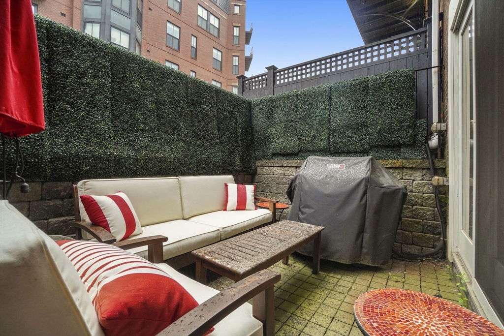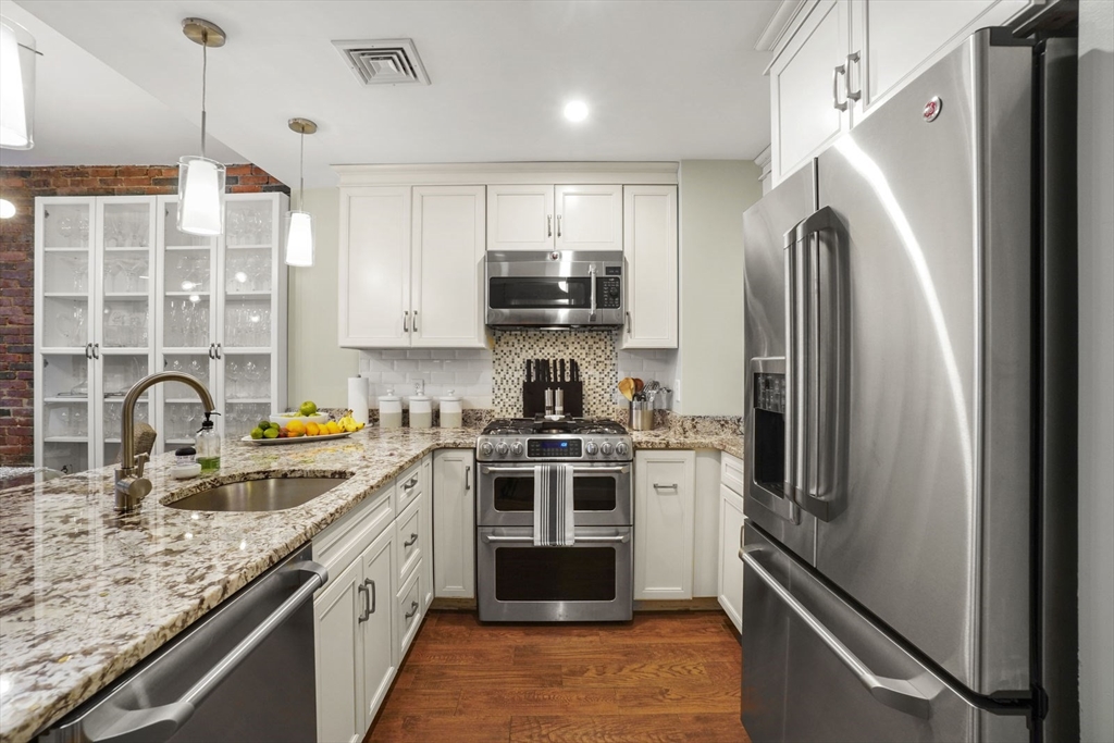 Amazing opportunity to live in a tastefully renovated condo-quality Two-Bedroom, Three-Bath duplex with extra "Bonus Room" conveniently located near the Back Bay/ South End border on gorgeous tree-lined Follen Street- directly off the Southwest Corridor. Enter the first floor foyer and you'll find a Guest suite w/ private bath & tub, an in-unit washer/dryer stack, plus, a king-sized Master BR-suite w/ private balcony, huge walk-in closet and enormous spa-like bath w/ claw foot tub, double vanity & shower stall. Head downstairs and you'll pass by the "Bonus Room" and the 3rd Bath on your way to the open-style kitchen, dining and living spaces - leading out to the private patio -and- the full-sized parking space. Uniquely offering: SS appliances and upgraded cabinets, granite counters w/ breakfast bar, pendant & recessed lighting, Central A/C & newer tankless HW system, ceramic & wood floor tiling, plus exposed brick & one direct-access parking spot. Sorry, no undergrad students.