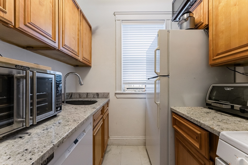 Whether you’re seeking a comfortable place to call home or considering an addition to your investment portfolio, this property is a must-see. This charming 1 bed/1 bath condo blends comfort, convenience, and urban living, on the Brighton/Brookline border. The living room is bright with three large windows and the spacious hallway offers a bonus nook, perfect for an office or exercise area. This rear facing unit is sun-filled, with wood floors, a large storage closet and many original details. In 2024 the bathroom was renovated and the kitchen was updated with new counters and flooring. Conveniently located across the street from the GreenLine Washington St. T Stop (B Branch) and nestled among acclaimed restaurants and cafes, there's even a Whole Foods a block a way. Shared laundry in basement. Condo fee includes heat, hot water and gas. Currently rented for $2150 per month through 8/31/2026.