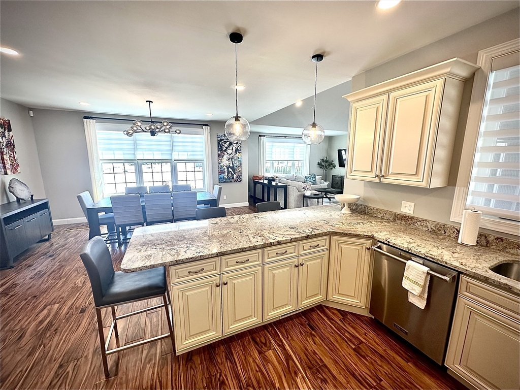 Distinguished custom Turn Key ranch in a premier newer neighborhood. Set on a generous corner lot, this exceptional home comes completely furnished and features an open-concept living and dining area with vaulted ceilings with rich Brazilian maple and tile flooring throughout. The gourmet kitchen offers quartz countertops, Viking appliances, and custom cabinetry perfect for everyday living and entertaining. Enjoy 3 well-appointed bedrooms, including a serene primary suite with jetted tub, walk-in shower, and custom walk-in closet. Additional highlights include a spacious great room with additional patio access, a partially finished basement with expansion potential, a beautifully designed custom patio, and an oversized 4-car garage. Situated on a large lot with a private back yard and room for a pool. Conveniently located just a short Distance to private schools. Make The Move and schedule your private showing today.