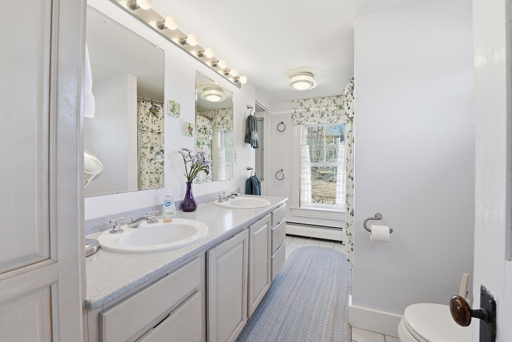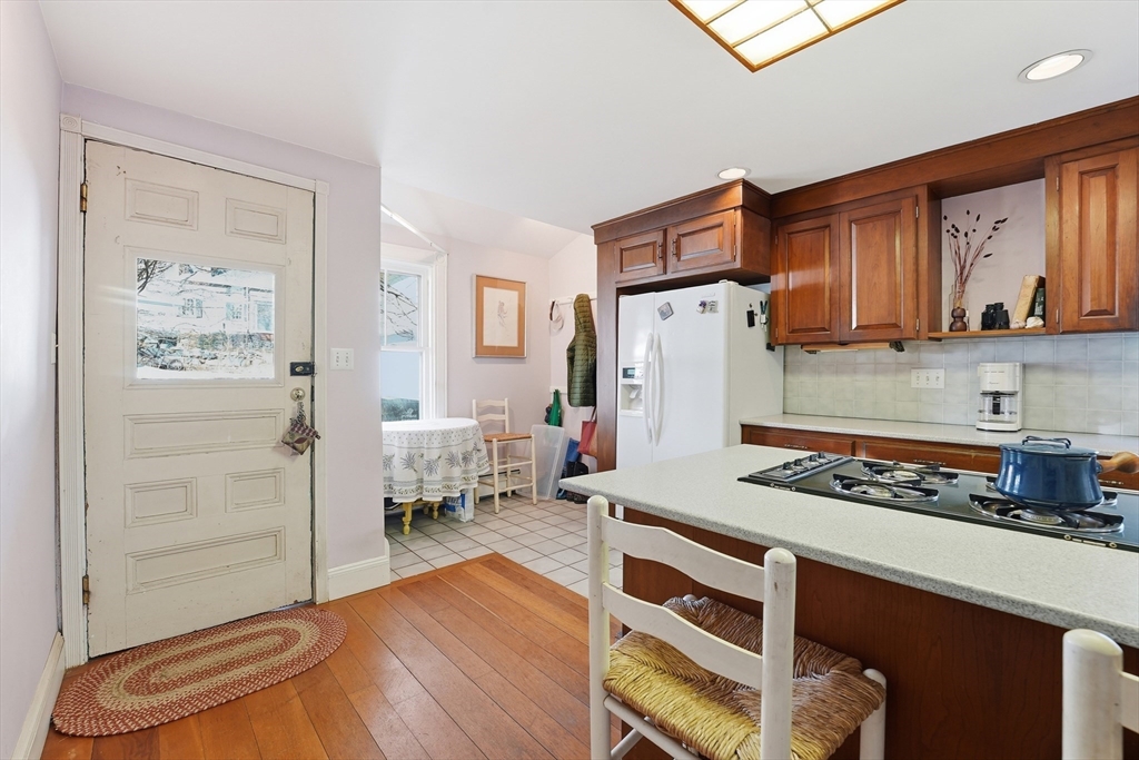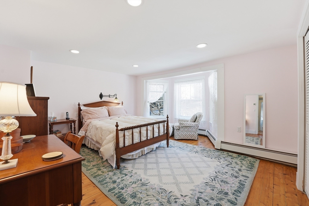 Historic Greek Revival in Harvard Center | The Wood–Hartwell House, Circa 1836. A rare opportunity in a Harvard Center village setting. Filled with natural light, this classic center-hall home offers 2,264± sq ft with five bedrooms and 1.5 baths. The main level features gracious living and dining rooms, a spacious family room, and an eat-in kitchen with breakfast nook opening to a large rear deck overlooking private gardens. Upstairs are five bedrooms served by a full bath. Walk-up attic and full basement provide storage and expansion possibilities. Located within the Harvard Center Local Historic District and moments to top-ranked schools, the library, General Store, Bare Hill Pond, and nearby conservation trails. Convenient to Routes 2 and 495 with access to Boston, Worcester, and Nashua. Seller in process of connecting to town sewer. A special antique home ready for its next chapter.