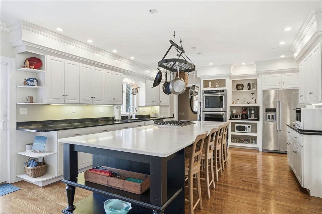Set in the timeless charm of Wenham, this exceptional home blends classic elegance with modern luxury on nearly 2 private acres. A stately Colonial in an executive enclave, it features a grand marble foyer and thoughtfully designed living spaces throughout. The chef’s kitchen impresses with a 12’ island, high-end appliances, and opens seamlessly to a fireplaced family room with built-ins and wet bar—perfect for entertaining. Upstairs offers 4–5 bedrooms and 3 full baths, including a well-appointed guest suite and laundry room. The walkout lower level provides a flexible floor plan, ideal for a game room, den, or meditation and yoga room. Complete with a 3-car garage, this home offers refined living in one of the North Shore’s most sought-after settings.