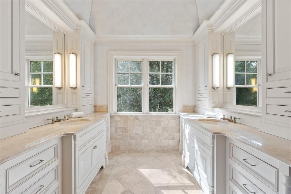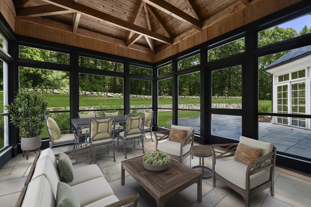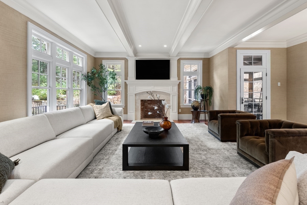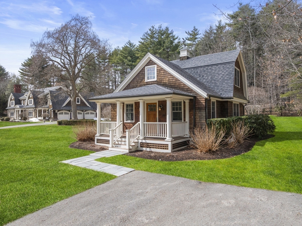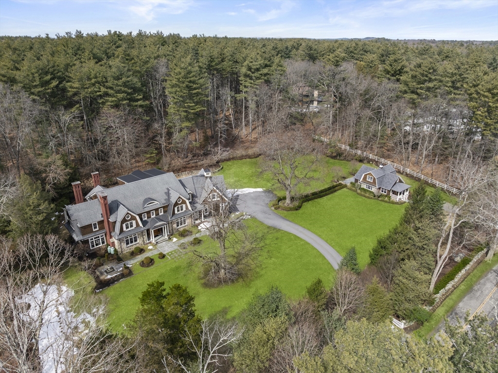 A rare and exceptional six bedroom estate is complemented by a 3 bedroom shingle style guest cottage. With timeless architectural appeal, the home showcases unsurpassed craftsmanship, meticulous attention to detail and curated finishes throughout. The first floor welcomes you with the grand foyer's dramatic staircase, a richly appointed mahogany-paneled library, and elegant formal living and dining rooms. The kitchen includes a large island, breakfast room that leads to the family room anchored by a beautiful limestone fireplace and screened in porch. Five en suite bedrooms are highlighted by the expansive primary suite complete with a spa-like bath and generous walk-in closets. The third floor has a sun-filled sitting room with a 6th bedroom. The lower level offers a bonus room with bar, golf simulator room and home gym. Set on one of Weston's most picturesque roads close to trails and major commuting routes to Boston and Cambridge.