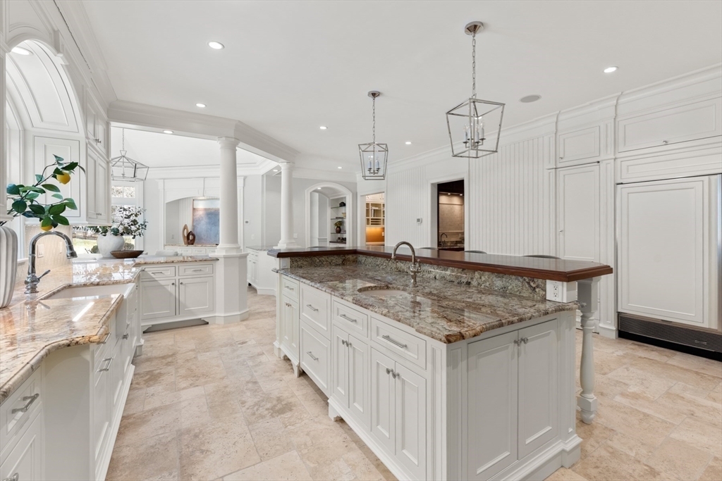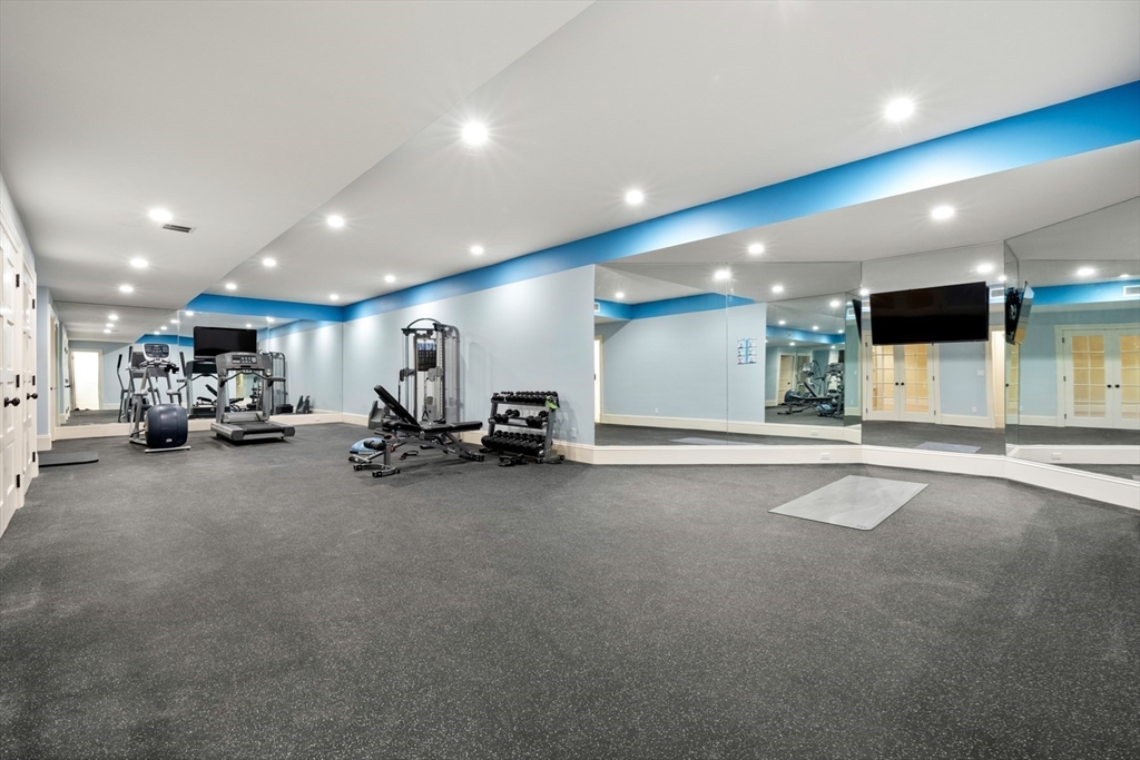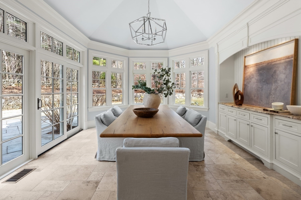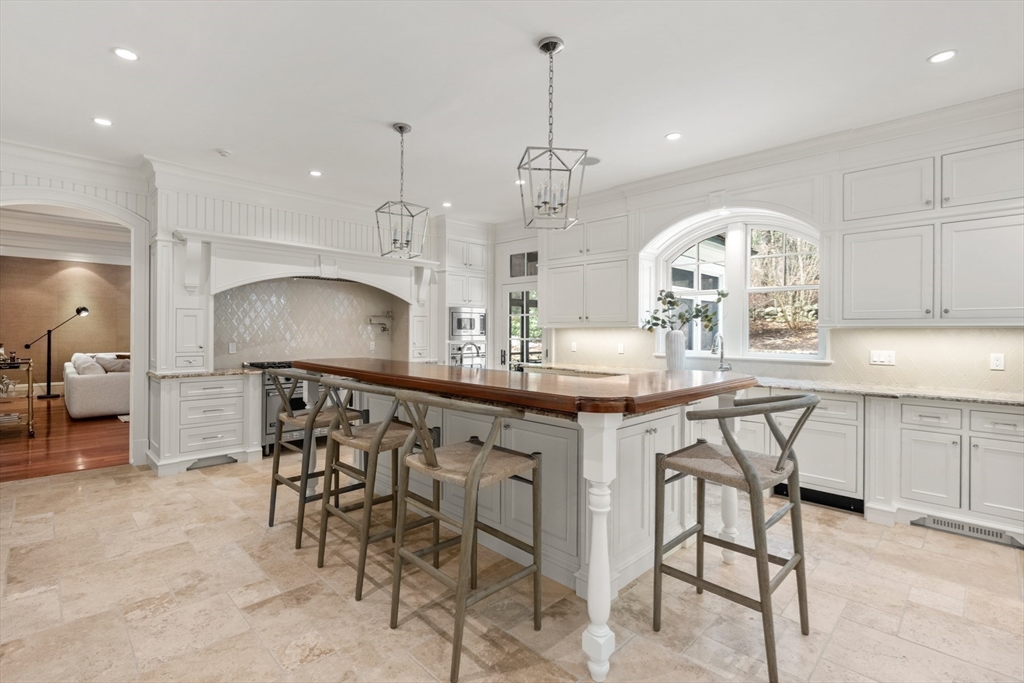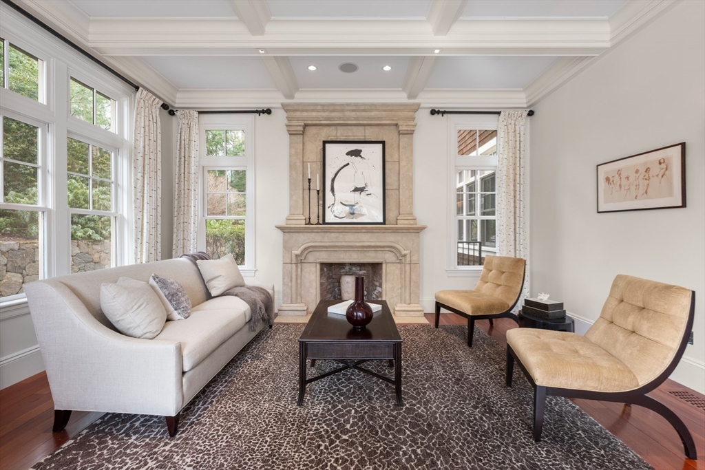 A rare and exceptional six bedroom estate is complemented by a 3 bedroom shingle style guest cottage. With timeless architectural appeal, the home showcases unsurpassed craftsmanship, meticulous attention to detail and curated finishes throughout. The first floor welcomes you with the grand foyer's dramatic staircase, a richly appointed mahogany-paneled library, and elegant formal living and dining rooms. The kitchen includes a large island, breakfast room that leads to the family room anchored by a beautiful limestone fireplace and screened in porch. Five en suite bedrooms are highlighted by the expansive primary suite complete with a spa-like bath and generous walk-in closets. The third floor has a sun-filled sitting room with a 6th bedroom. The lower level offers a bonus room with bar, golf simulator room and home gym. Set on one of Weston's most picturesque roads close to trails and major commuting routes to Boston and Cambridge.