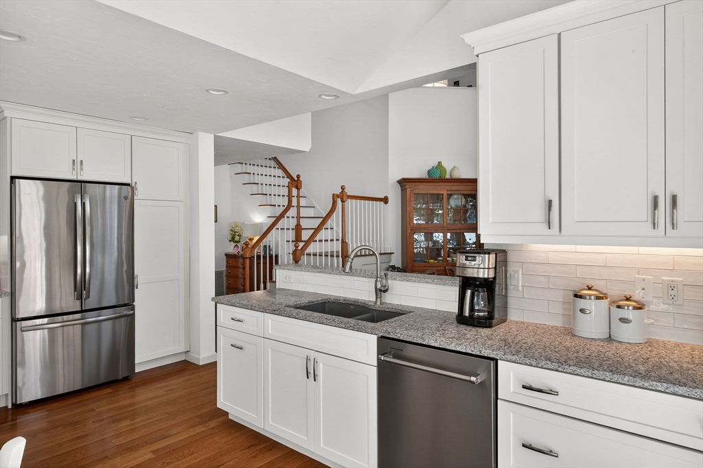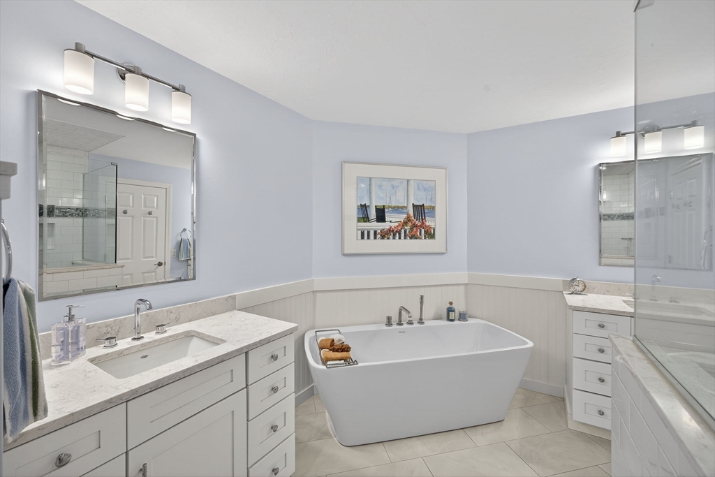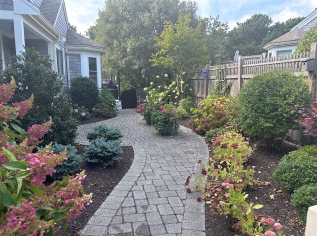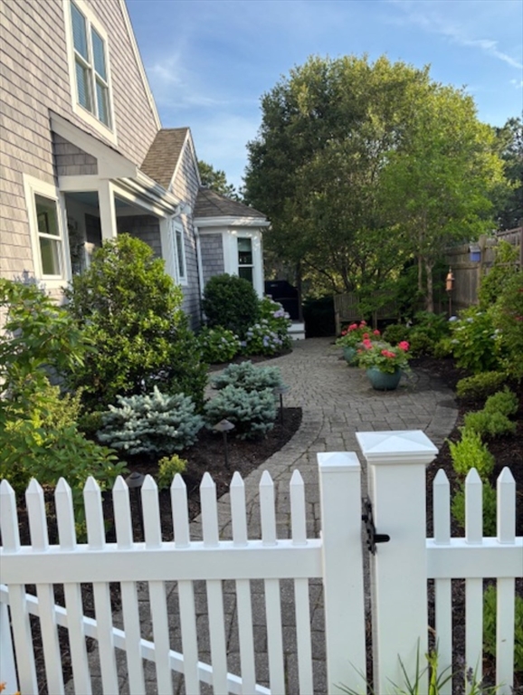 Picture Perfect Golfview, inviting bright "U" model end-unit townhome at Winslowe's View in The Pinehills is filled with warmth. It is flooded with natural light, enhancing its spacious interior, which is fantastic for entertaining. The open-concept dining and living areas feature cathedral ceilings, walls of glass, gas fireplace, and a slider leading to the deck, creating a seamless connection to the outdoors. The study, a cozy retreat, features a gas fireplace and custom built-in shelving. The first-floor primary suite, with its cathedral ceiling, provides a private oasis with generous closet space and a well-appointed bathroom, newly remodeled separate shower & tub with a private garden. Upstairs, a large loft space offers flexibility, w/ guest bed + bath. Lower level with several living areas and full bath. A professionally landscaped, secluded courtyard. New mechanics, new composite decking, windows, sliders & trim, new Primary Bath, Updated kitchen. Move in and Enjoy!