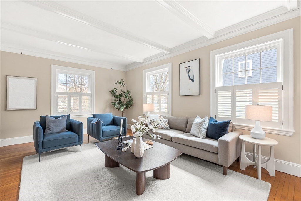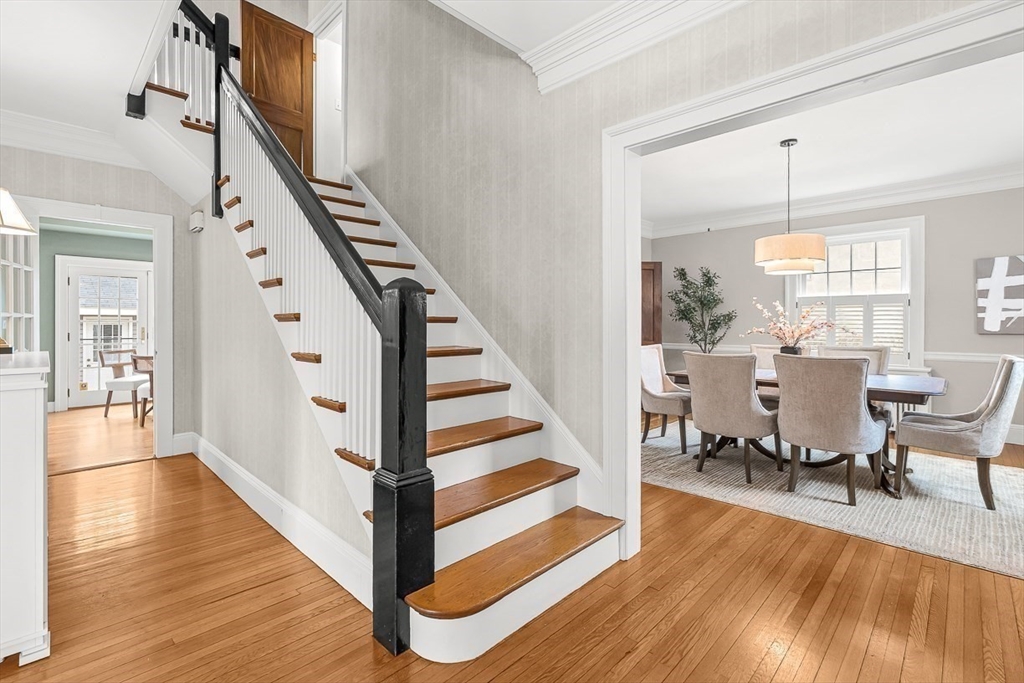 This exceptional Colonial Revival home in a sought-after Winchester neighborhood blends craftsmanship, thoughtful updates and a design layout perfect for entertaining and modern day living. A welcoming front porch introduces a double entry foyer, high ceilings with crown molding and period detail that flow through the formal dining and living room with fireplace to the family room, kitchen and butler’s pantry. Oversized windows drench hardwood floors with sunshine. Keep the French doors open to access the patio and fenced-in back yard, perfect for play. This well-proportioned home includes 2 primary suites, 5 additional bedrooms plus a 2nd floor office with bead board. Enjoy the private, renovated 3rd floor as an owner sanctuary, work space, or kid zone! With abundant storage, partially finished lower level rec room and 2-car garage this home has it all; including, a location close to the town center, schools, and train - all on the south side of Winchester, close to Boston/Cambridge.