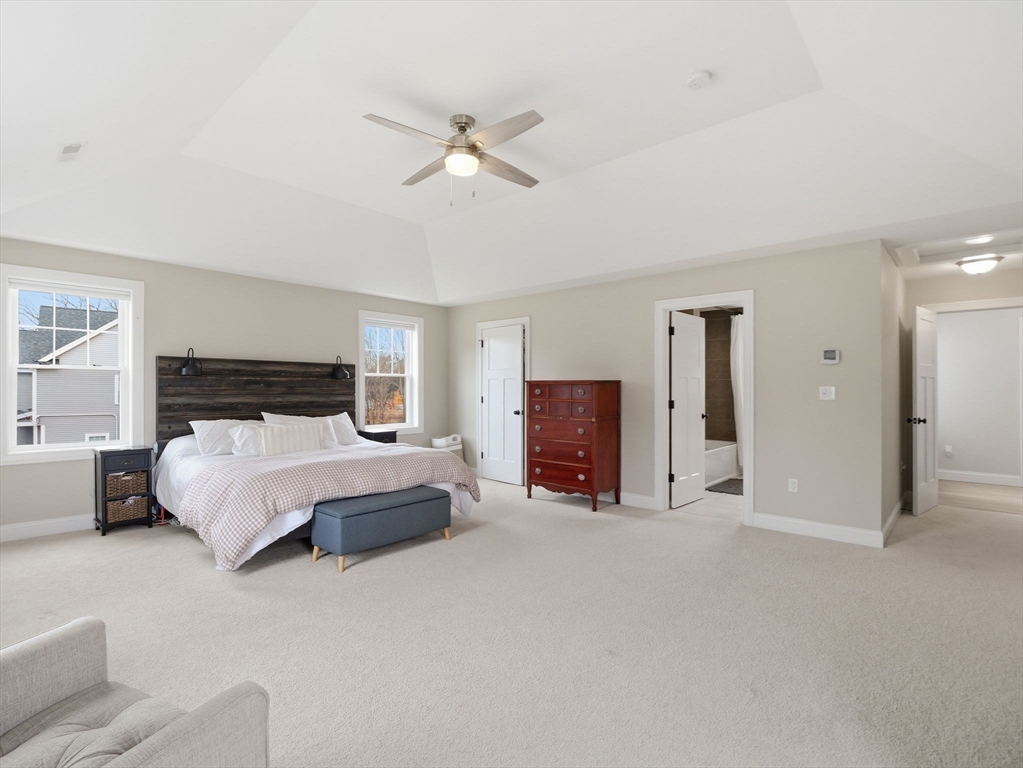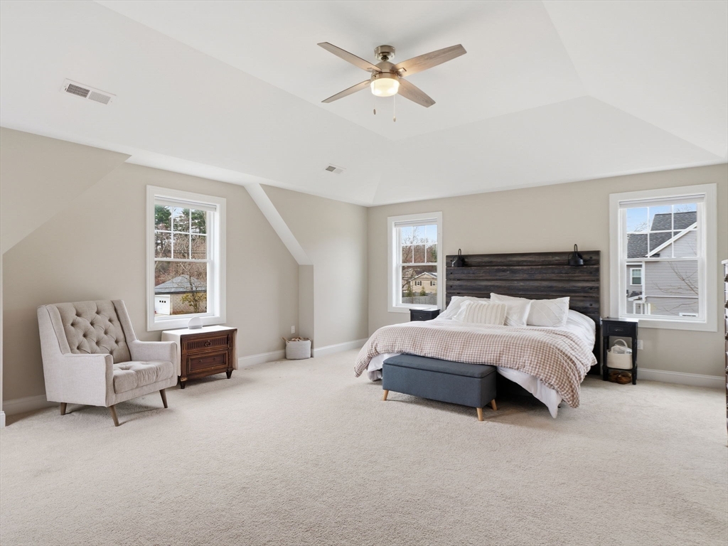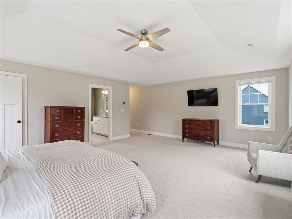Built in 2022, this beautifully maintained 4-bedroom, 4-bath home offers over 2,800 square feet of finished living space, plus an additional 1,200 square feet in a walk-out basement ready for your customization. At the heart of the home is a stunning kitchen featuring quartz countertops, stainless steel appliances, and a center island—perfect for everyday living and entertaining. Sliders open directly to a spacious deck overlooking the large, level backyard.The main living area is warm and inviting with a gas fireplace, while the thoughtfully designed layout includes a convenient second-floor laundry room and a 2-car garage.The primary suite is a standout, featuring vaulted ceilings, a generous walk-in closet, and a luxurious en-suite bath with heated floors. Set on a private 1.28-acre lot, the outdoor space is equally impressive, with a fully fenced yard, irrigation system, and private access to a pond—ideal for fishing in the summer and ice skating in the winter.