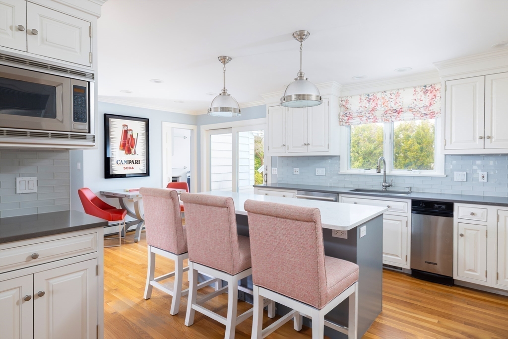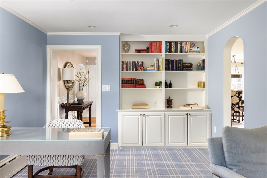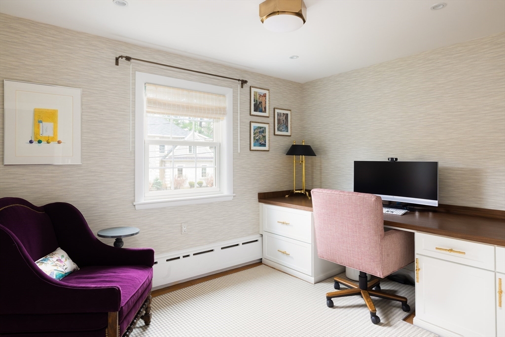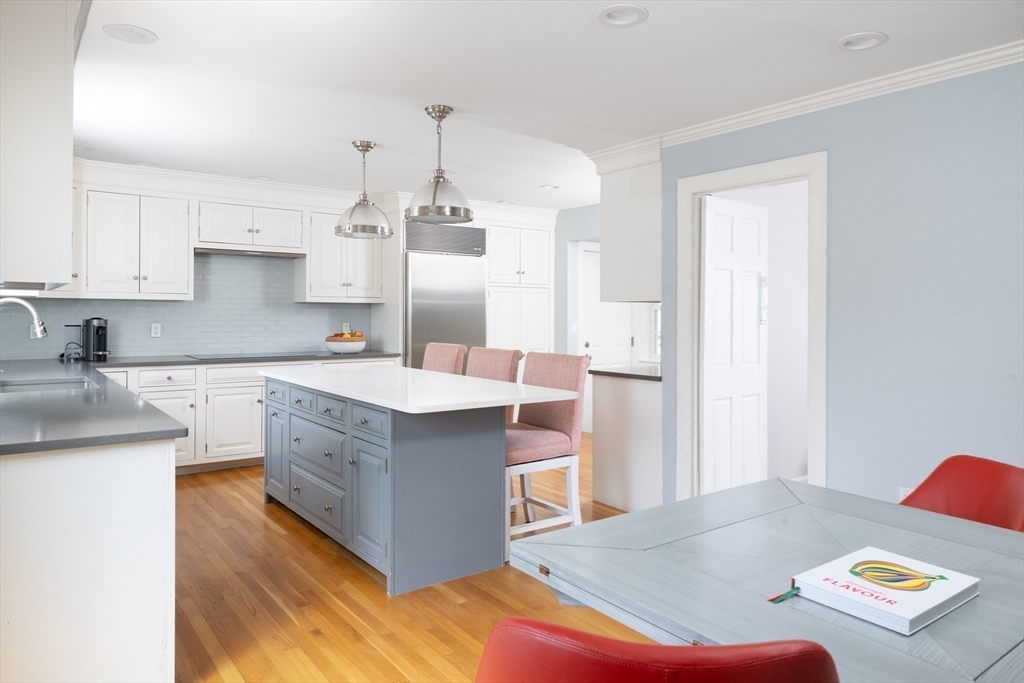 Conveniently located in Newton Centre, this meticulously renovated home is perfect. There is a versatile floor plan, ideal for entertaining, with a beautiful welcoming foyer that opens to a front-to-back living room with a fireplace (currently with a dining area), opening to a great room with an electric fireplace overlooking the level fenced in yard with beautiful mature plantings. The recently refreshed kitchen has top-of-the-line appliances, custom cabinets, and stone countertops, with access to the laundry room and the two-car attached garage. There is also a wonderful dining room, currently being used as a second family room. The second floor has a lovely primary suite with a lovely bathroom and three other family bedrooms and a family bathroom. The finished lower level has an exercise room and office/playroom. There are new HVAC systems, hardwood throughout and newer windows. Located near the Countryside, Brown and Newton South schools and major routes.