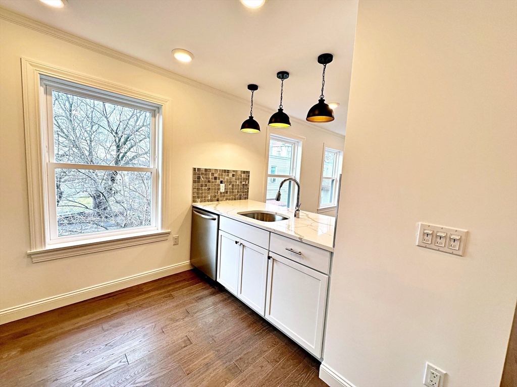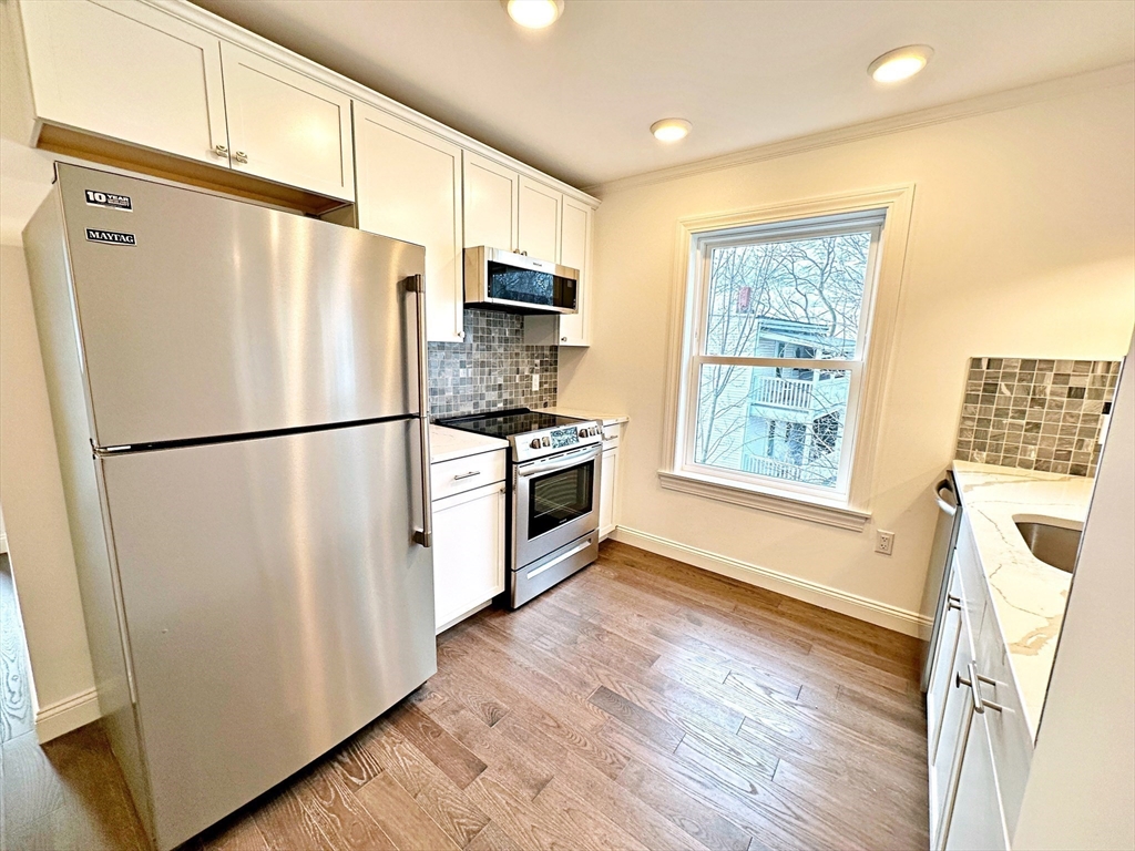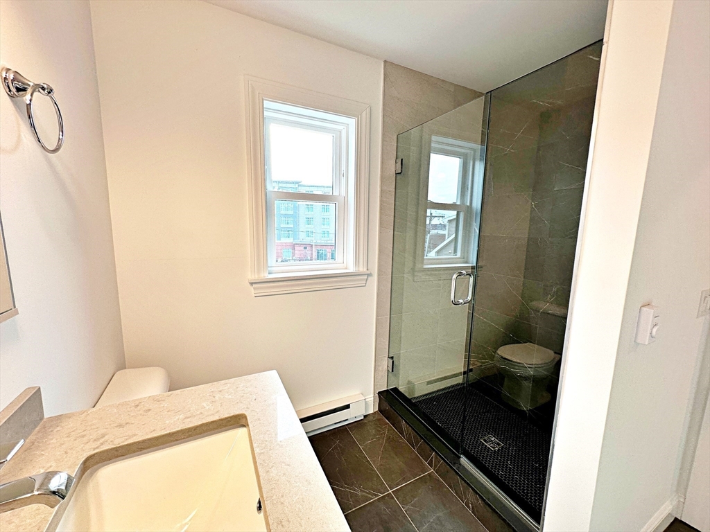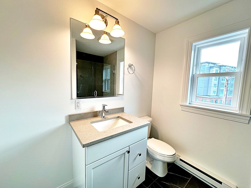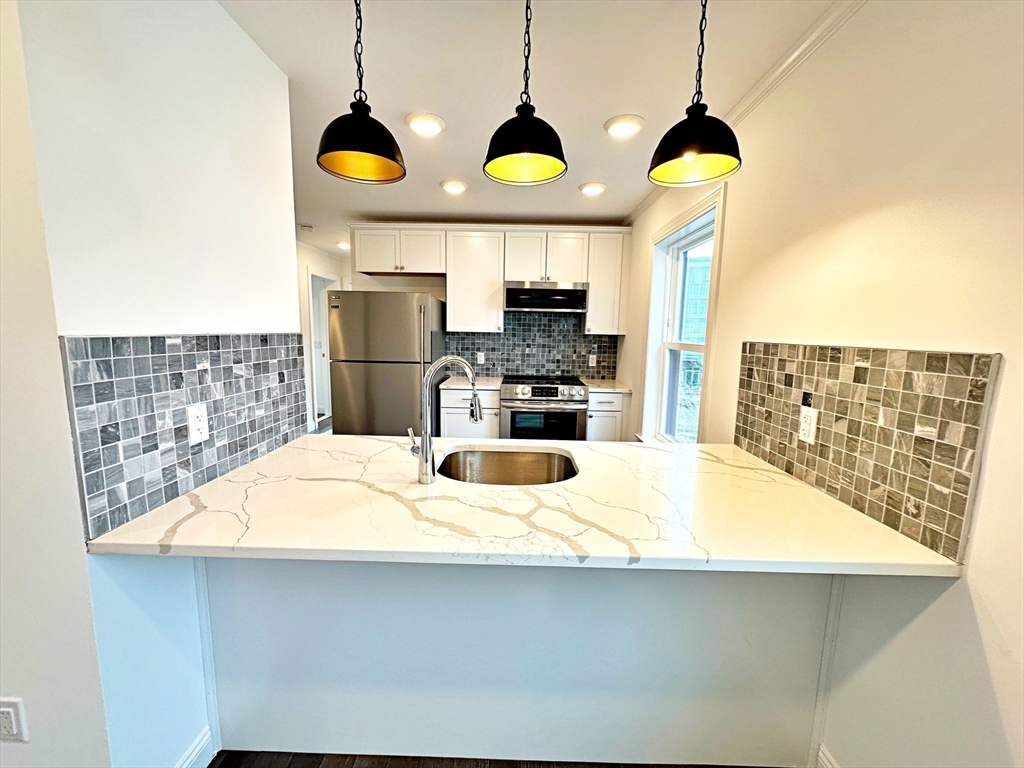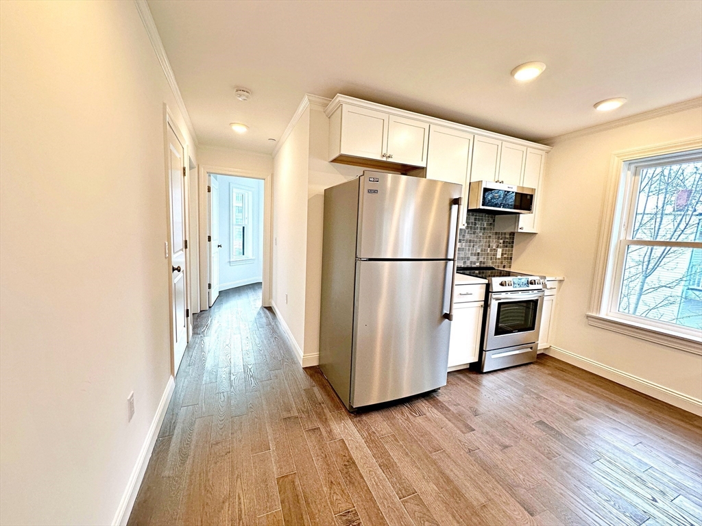 Welcome to this top floor, oversized 1 bed/1 bath + office space located in East Boston's Orient Heights! Completed in 2023, this property features hardwood floors throughout, a beautiful galley style kitchen featuring gleaming quartz countertops, stainless steel appliances including an induction electric range and microwave hood vent. This home includes two high efficiency mini-splits for low cost heating and cooling throughout the unit. Additional features are a separate WFH (work from home) space, a private outdoor space and in-unit laundry. Located steps from outdoor green spaces such as Noyes Park (across the street), Constitution Beach (0.7 miles) and the Mary Ellen Welch Greenway connecting Constitution Beach to the East Boston waterfront (0.7miles). Close to Orient Heights Square featuring shops and restaurants as well as an MBTA Blue Line Station, only 4 stops to Downtown Boston! First showings at weekend open houses.