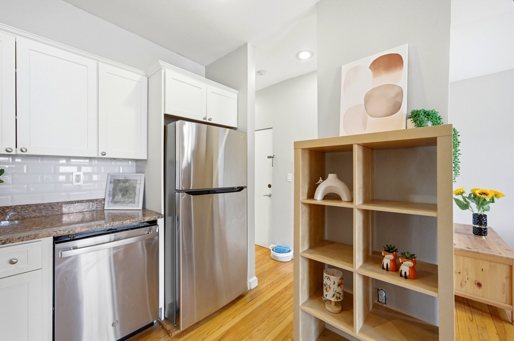 Bright and charming one-bedroom condo located in the vibrant Blackstone Park area of Boston’s South End. This home offers an efficient and comfortable layout with hardwood floors in the living area and kitchen, and carpeting in the bedroom. The kitchen features white cabinetry, granite countertops, tile backsplash, and stainless steel appliances, opening to a spacious living and dining area with great natural light. The generous bedroom includes a large walk-in closet, and the building offers common laundry and private basement storage. Residents also enjoy access to a shared roof deck with sweeping city views. Ideally situated near many of the South End’s well-known restaurants, cafés, parks, and neighborhood amenities, with convenient access to the MBTA Orange Line, Silver Line, and major highways, making commuting throughout Boston easy.