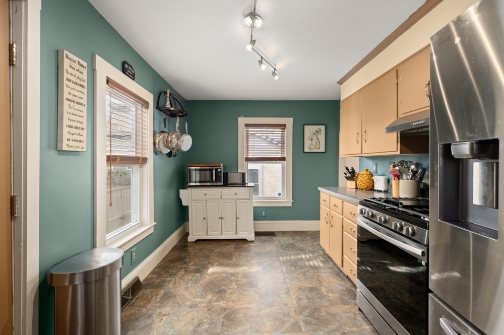 Charming antique Colonial located in a wonderful neighborhood! This move-in-ready home offers 3 bedrooms and 1.5 baths with classic character throughout. The first floor features a welcoming living room, dining room, and a country kitchen with stainless appliances and abundant storage, along with a half bath and first-floor bedroom. Hardwood floors, high ceilings, bullseye molding, and large windows add warmth and timeless appeal. Upstairs, you’ll find two additional bedrooms and a full bath. The home also features 5 yr old gas forced hot air heating, 2 yr old central air, and a less than 1 yr old roof. The low-maintenance yard provides the perfect space to enjoy the patio or spend time outdoors. Tucked away on a quiet side street in a friendly neighborhood where neighbors look out for one another, the location is hard to beat. Just blocks from the rail trail, schools, parks, and downtown shops and restaurants, with convenient access to major commuting routes.