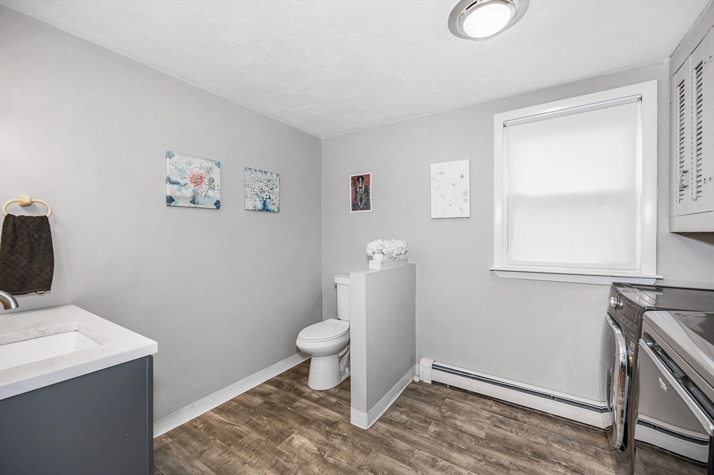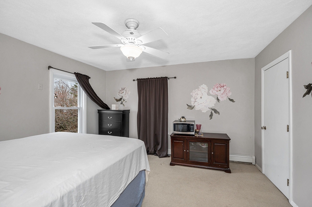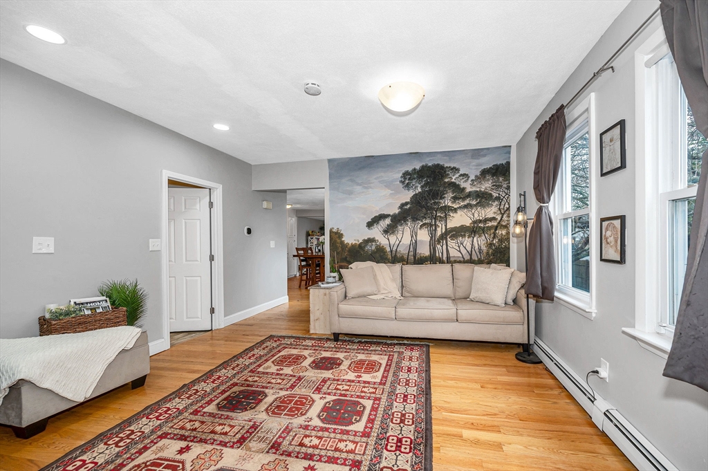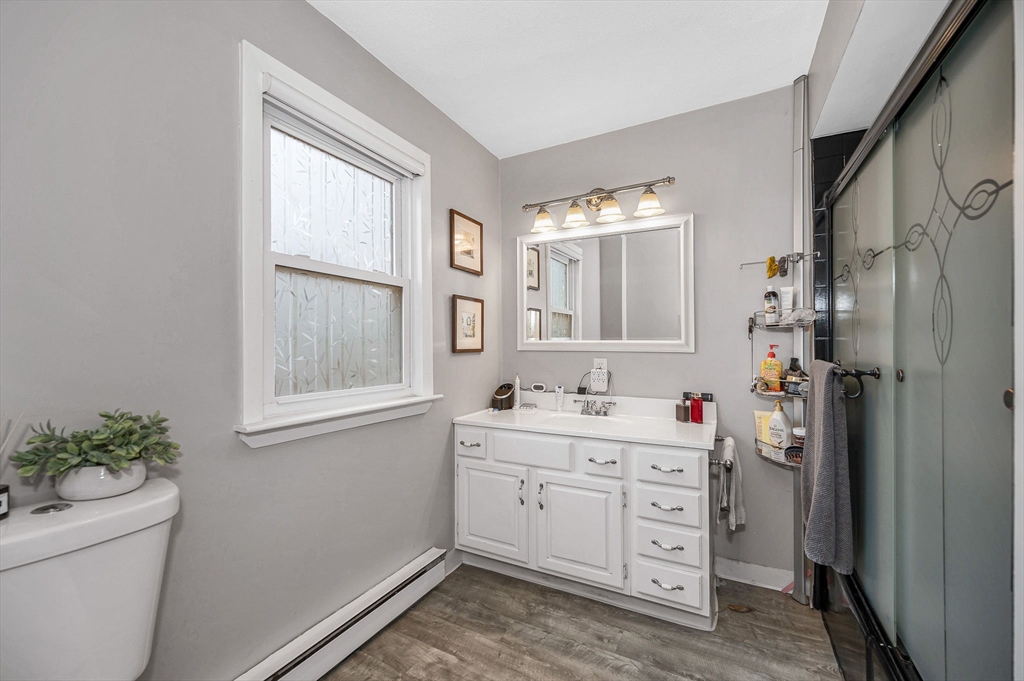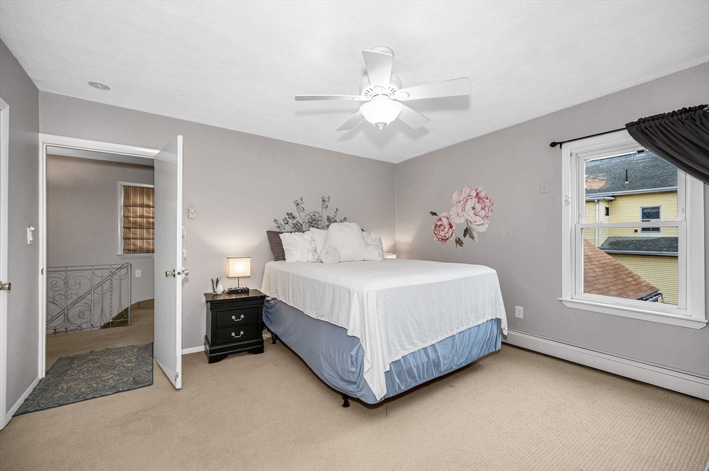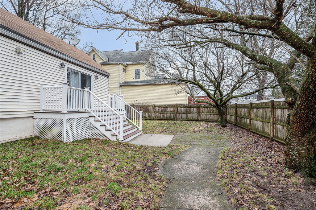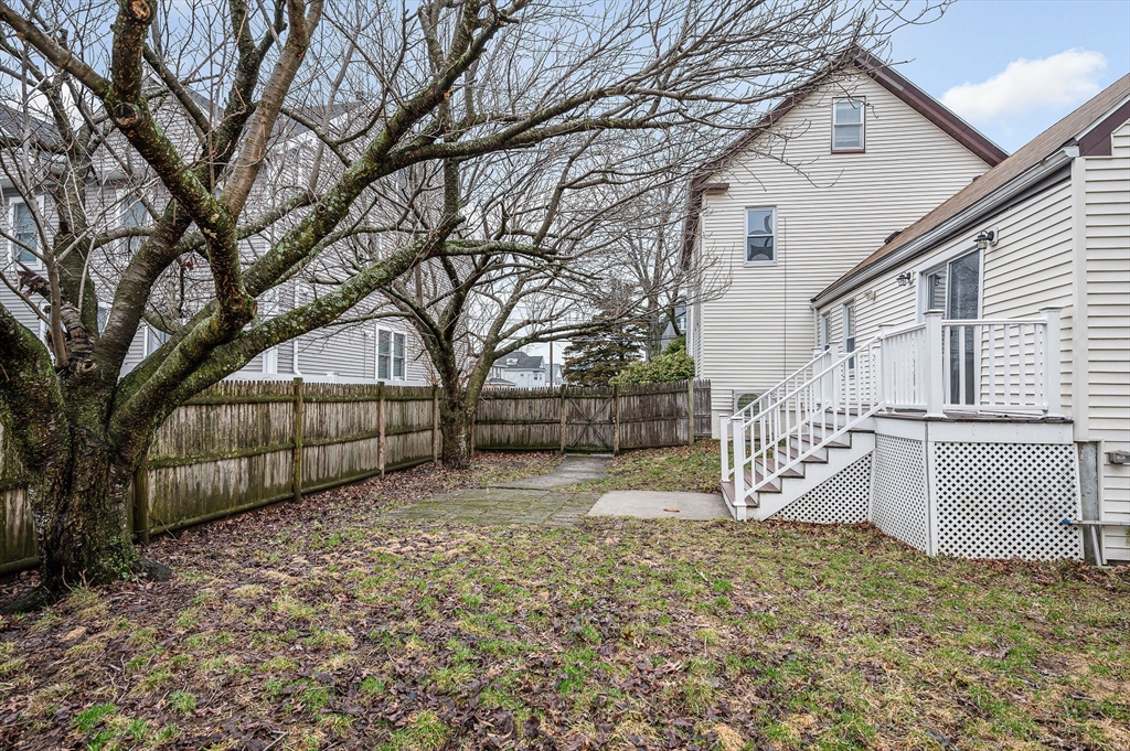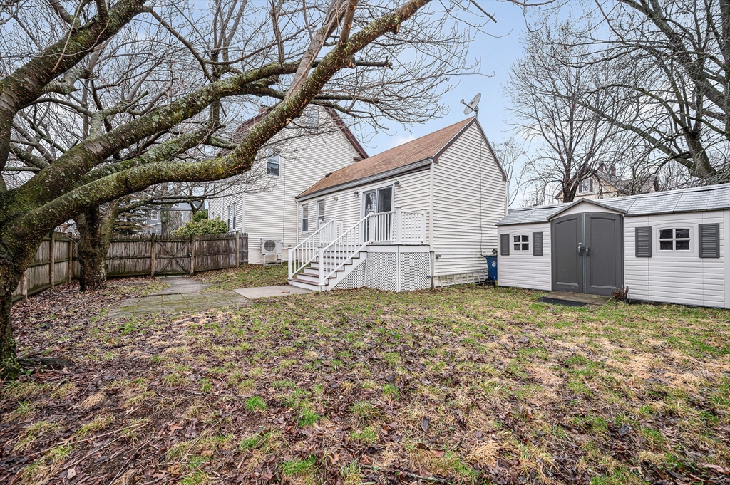 Lovely Colonial offering the perfect blend of modern updates and a functional layout. The main level features high ceilings, hardwood floors, a bright living area with natural light, and a layout that works well for everyday living. The large, eat- in ikitchen opens to a flexible dining or family space with access to a private composite deck, patio, and fenced backyard that features mature landscaping, cherry blossom trees and a large shed for extra storage. Updates include high-efficiency gas heating, tankless hot water, 200-amp electrical, mini-split AC/heat pump, stainless steel appliances, and updated bathrooms.The second floor offers two well-sized bedrooms and a full bath. The third floor features an oversized bedroom with built-ins, high ceilings, closets, and additional storage. For added convenience, a half bath with laundry is located on the main level. All of this conveniently located to Logan, shopping, dining, parks and highway access. This Revere gem is not to be missed