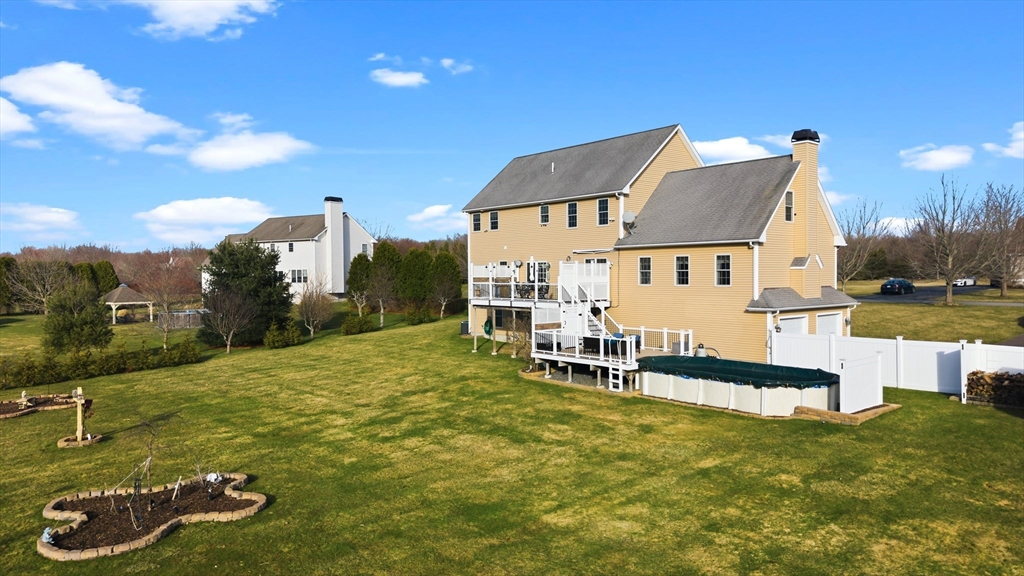 This stunning Colonial is the perfect blend of classic New England charm and modern comfort. Set on a beautiful 1.9-acre lot, you’ll love the open, sun-filled layout and spacious feel throughout. The chef’s kitchen is the heart of the home, featuring an induction cooktop and flowing seamlessly into the main living areas, perfect for everyday living and entertaining. Enjoy generously sized rooms, a versatile bonus room, and a layout designed for hosting gatherings with ease.The finished walkout basement adds an additional 675 sq ft of living space, ideal for a media room, home gym, or extended living area. Cozy up by the wood-burning fireplace or stay comfortable year-round with central air. Step outside to your private backyard oasis—complete with an above-ground pool, irrigation system, professional landscaping, and a storage shed.